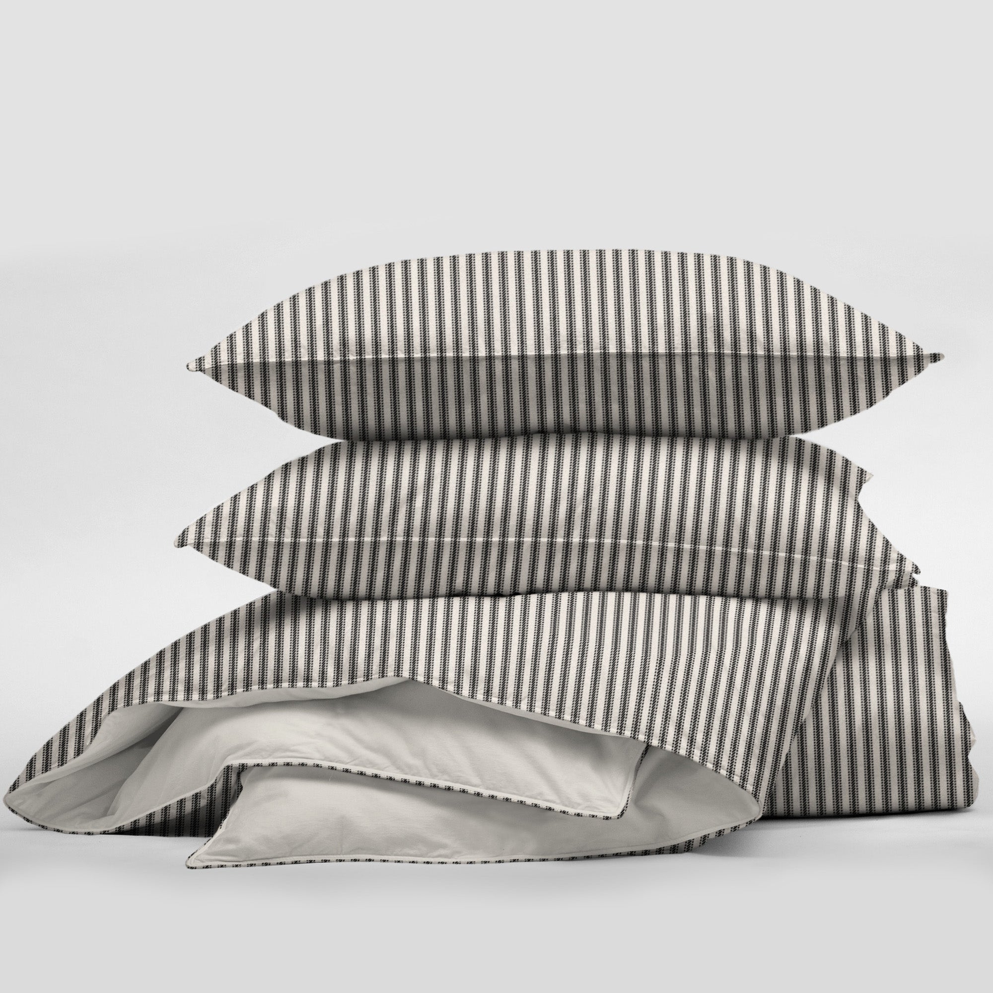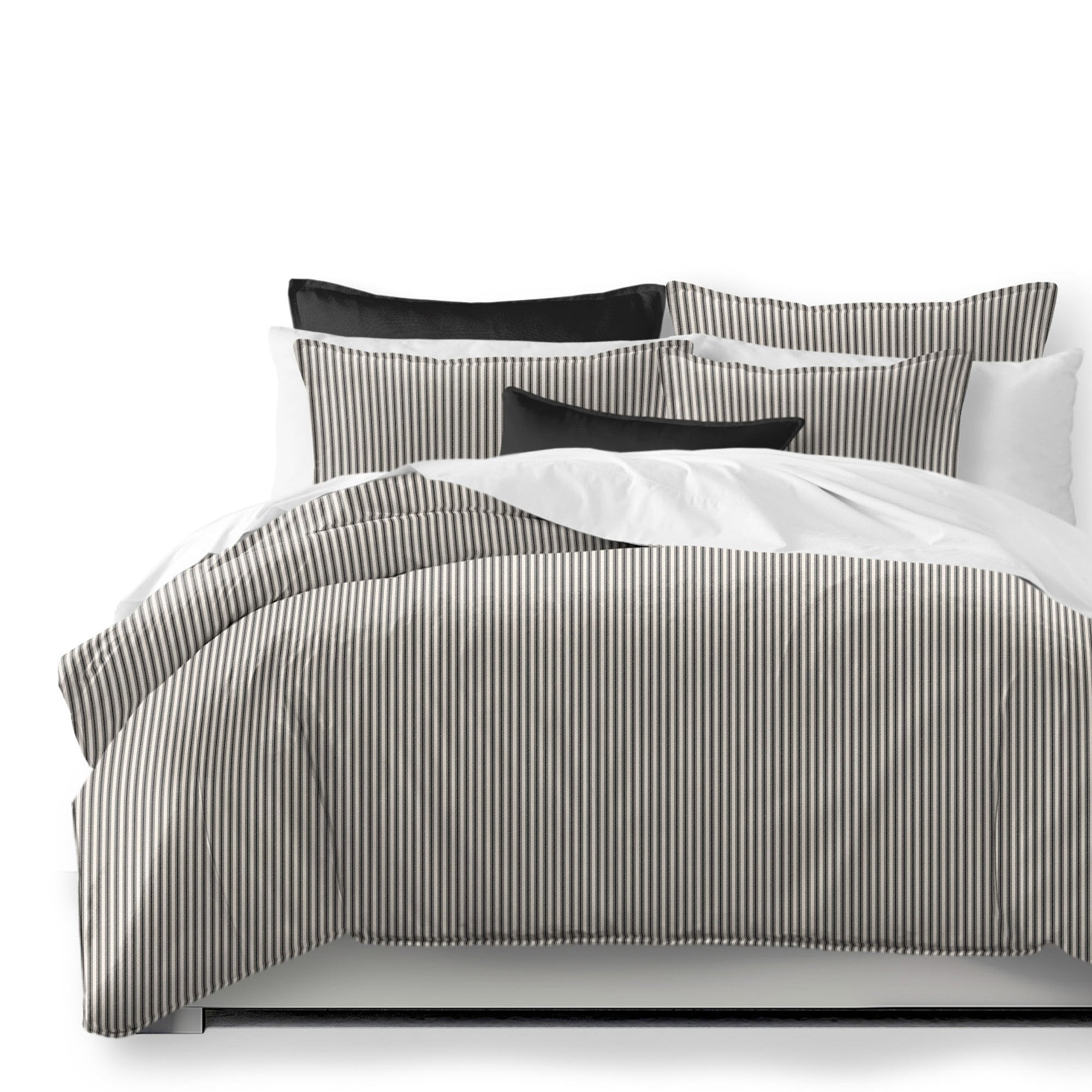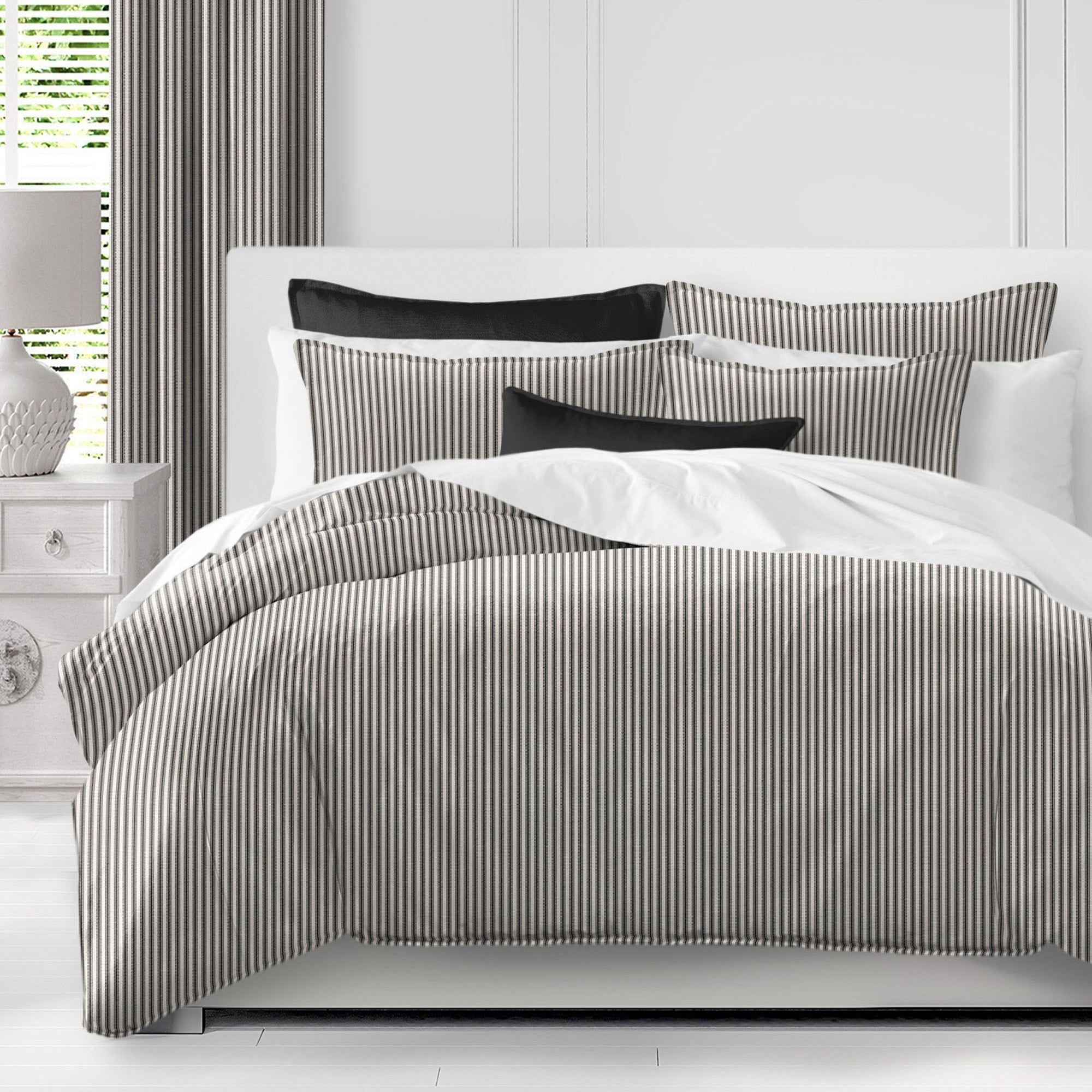 Cruz Ticking Stripes Black-Linen Coverlet Set