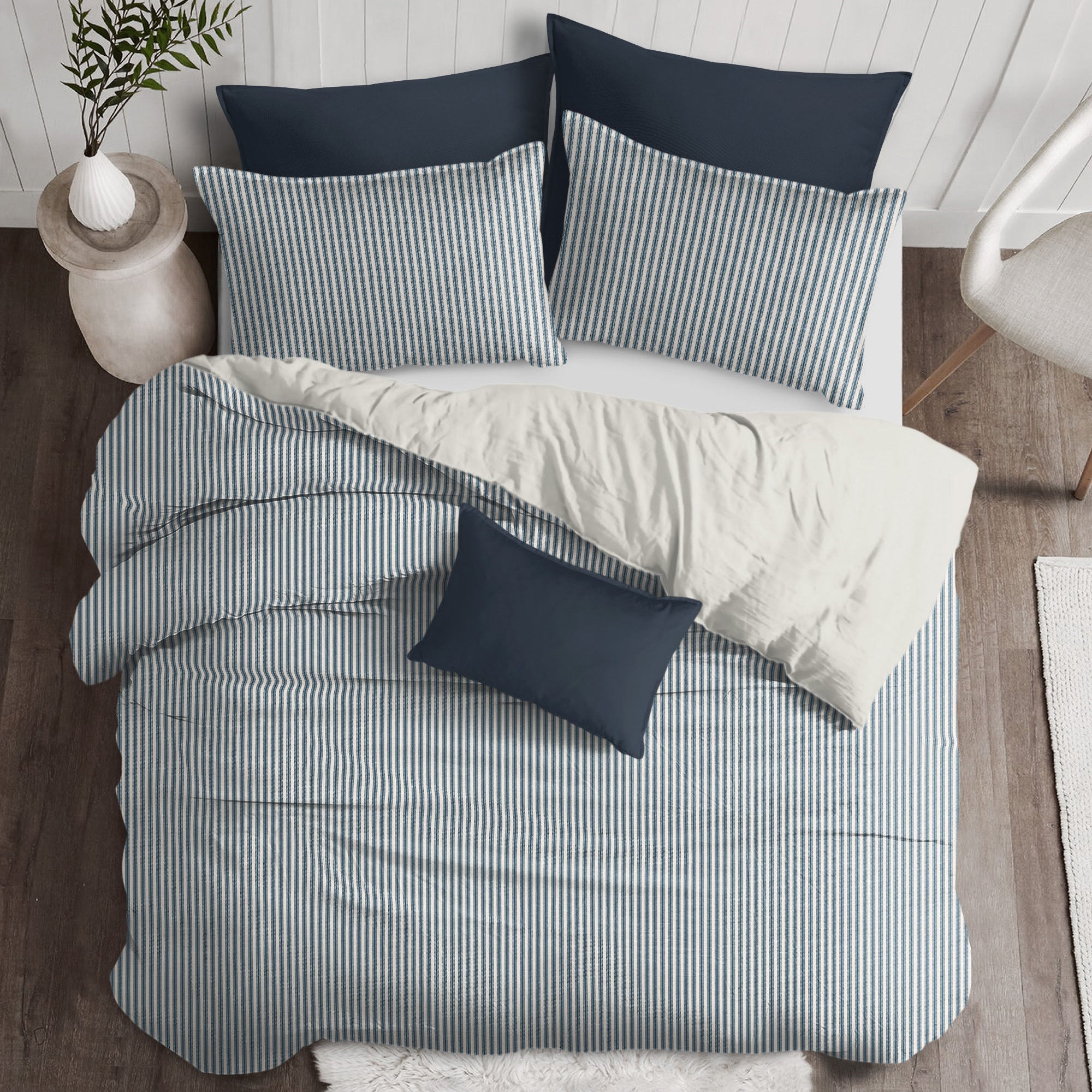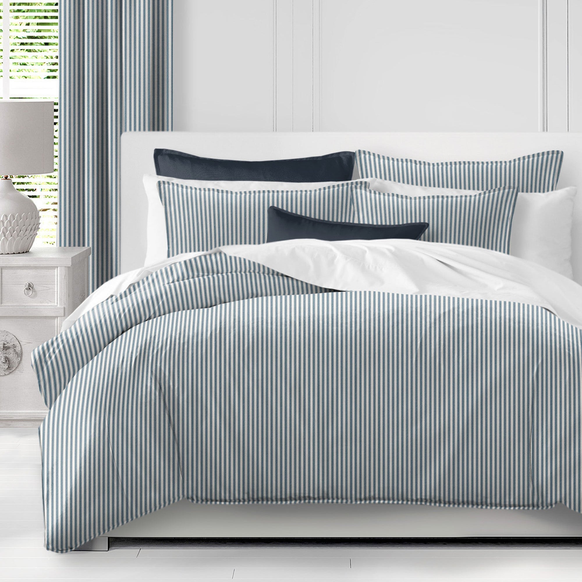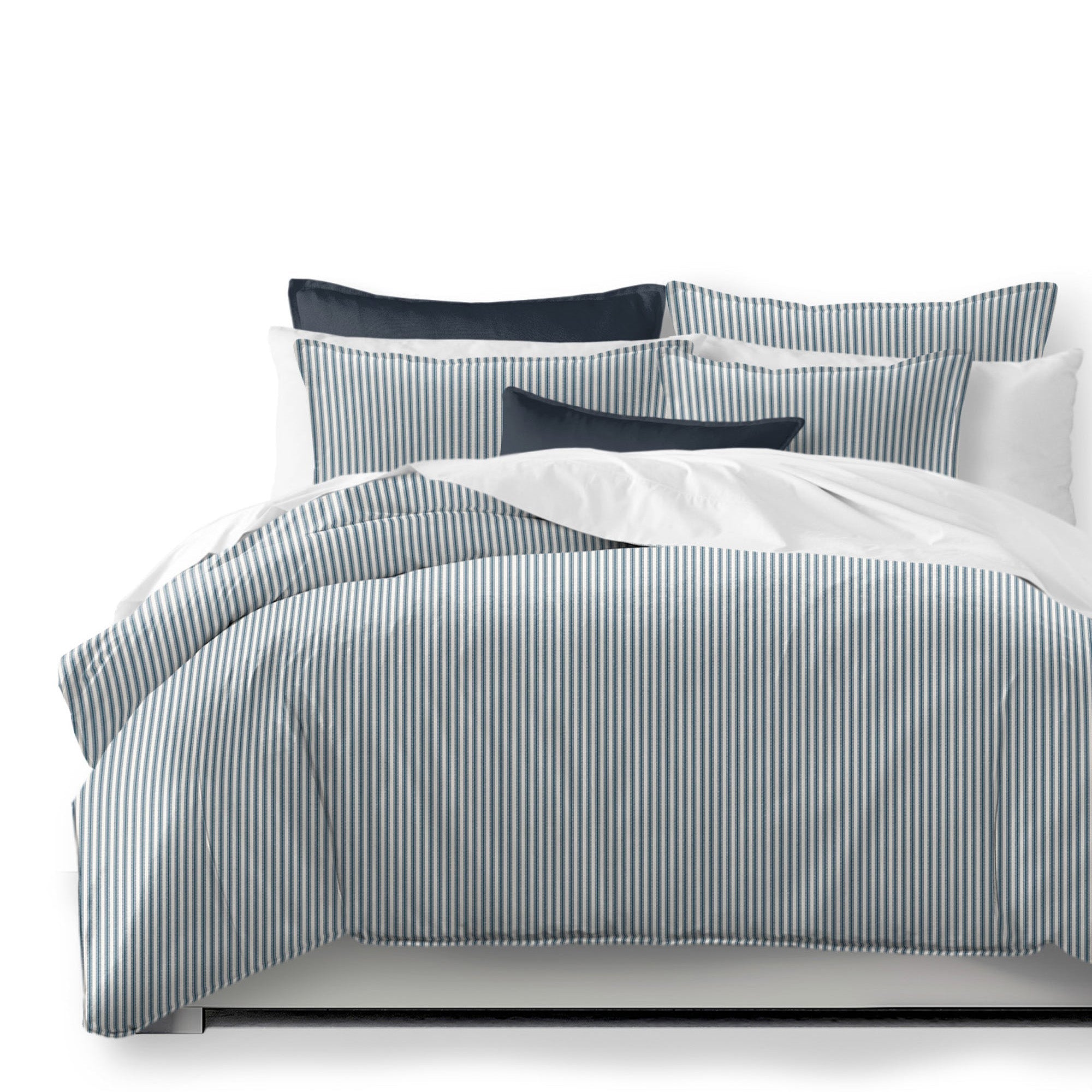 Cruz Ticking Stripes Indigo-Ivory Coverlet Set