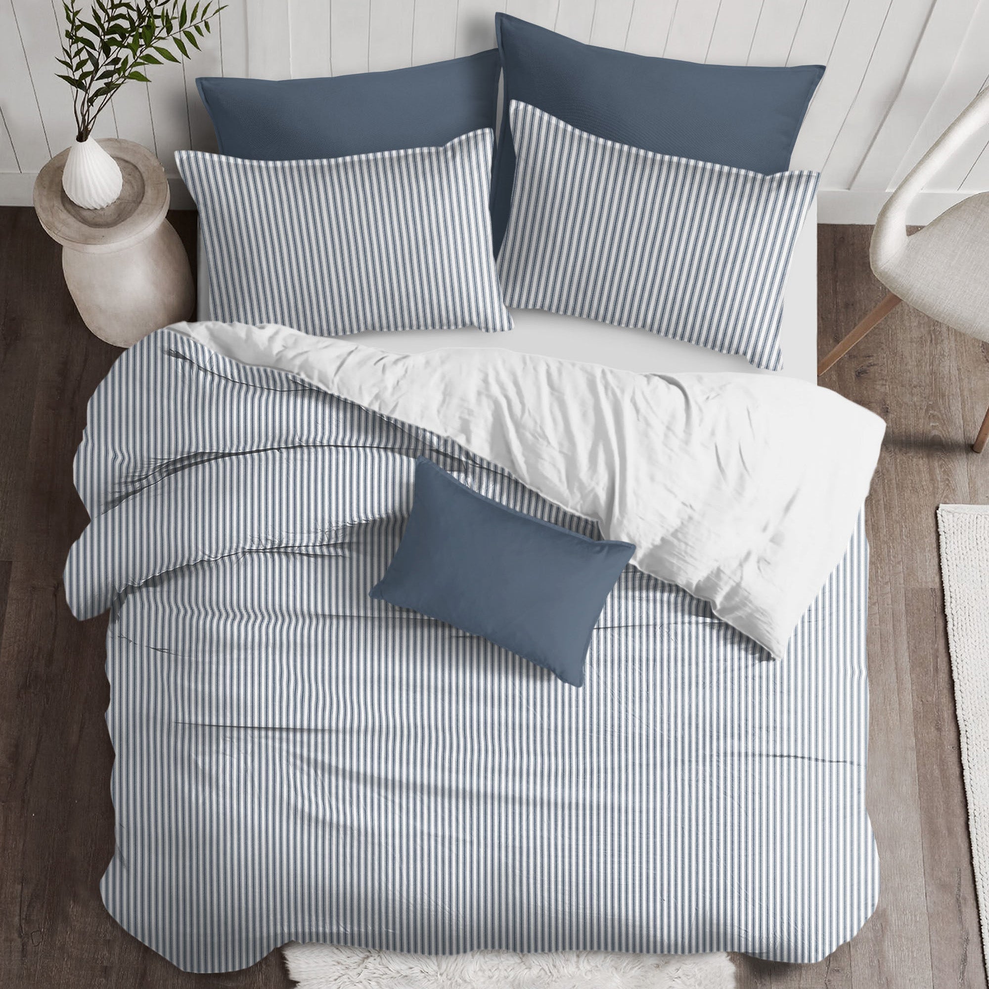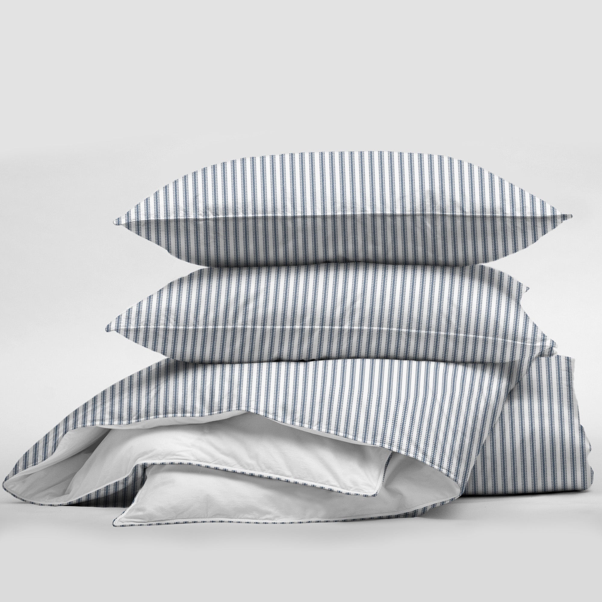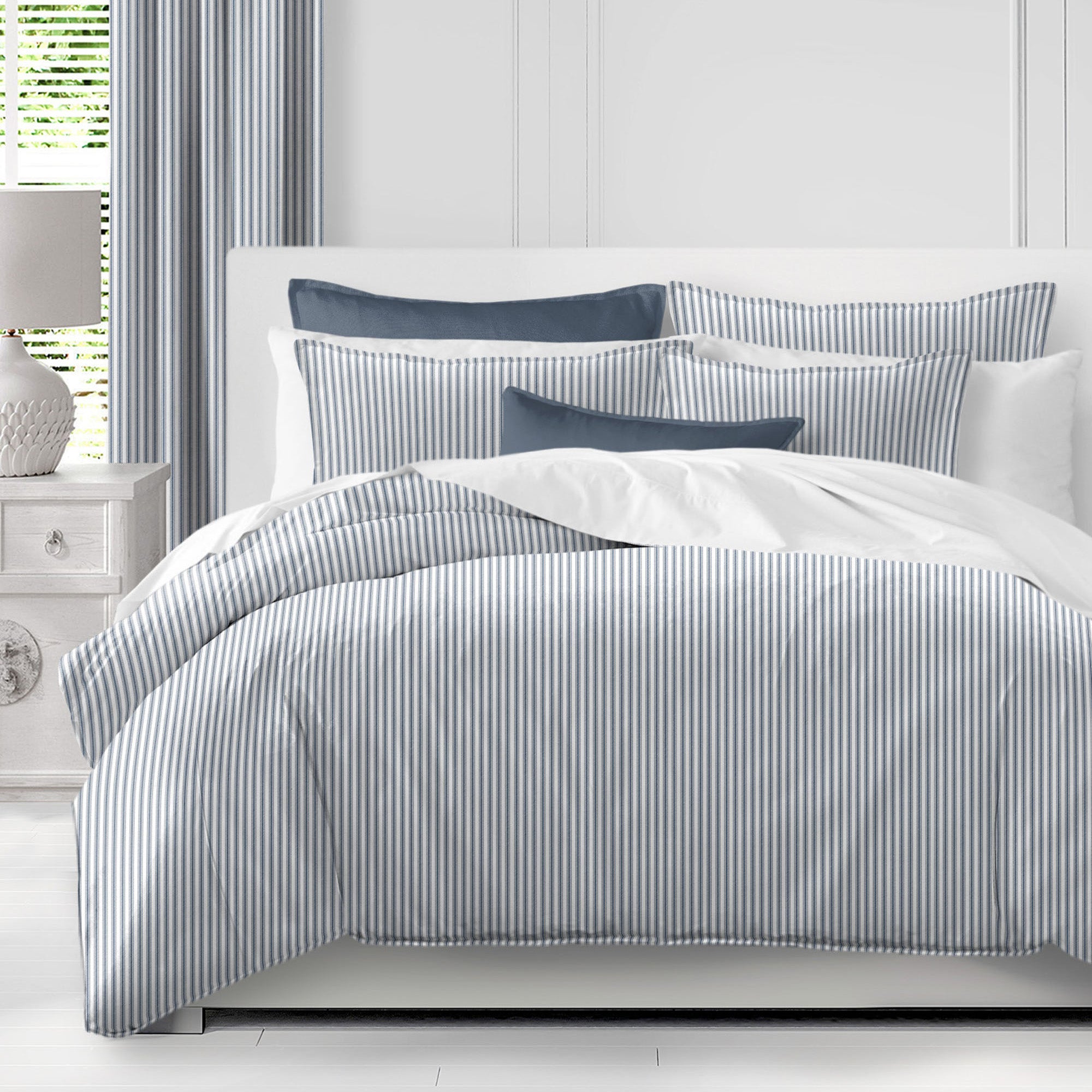 Cruz Ticking Stripes White-Navy Coverlet Set
