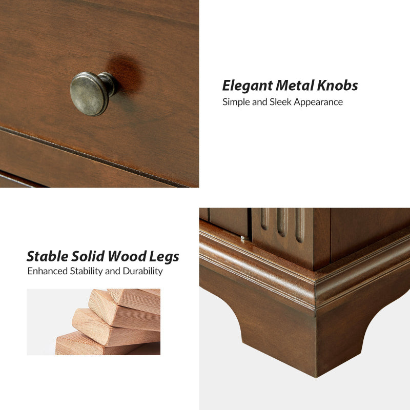 This TV stand has an attractive rustic aesthetic and offers plenty of space for your space. The frame is made of manufactured wood. Each of the two cabinets can be opened to store media players, games, books, and other equipment, while several open shelves and clear glass give you a place to display your favorite decorations. We love how this door design can add a modern and stylish feel to your living room. Two drawers and ample storage space complete it. Plus, a cable management cutout on the back keeps your cords stable.