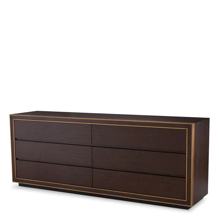 Drawer Dresser Camelot L Brown oak veneer | brushed brass finish
