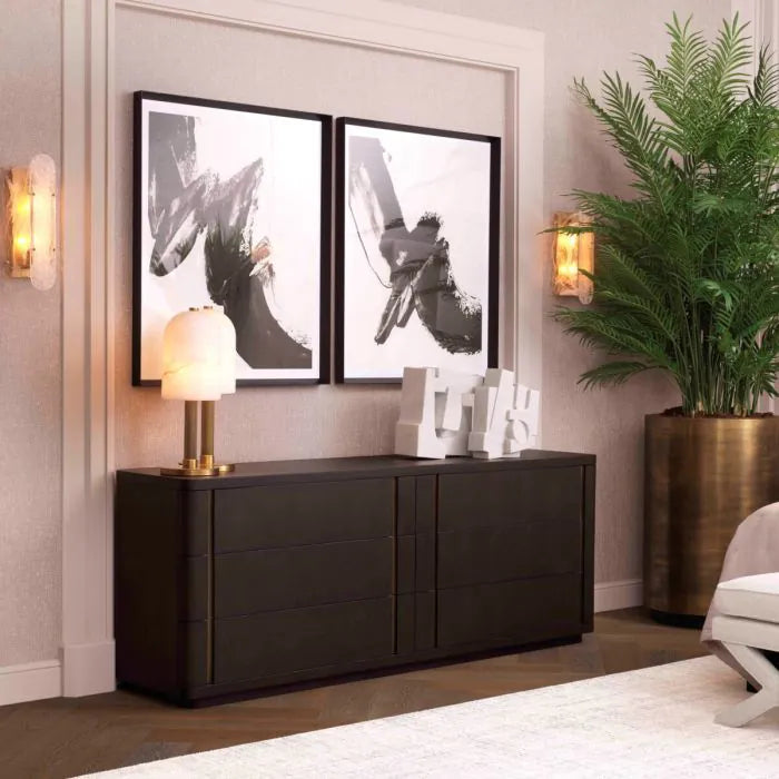 Drawer Dresser Modesto L Mocha oak veneer | brushed brass finish