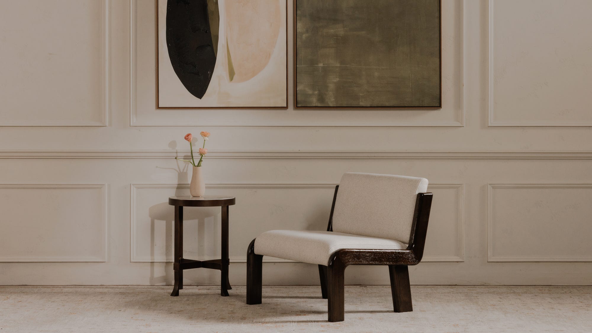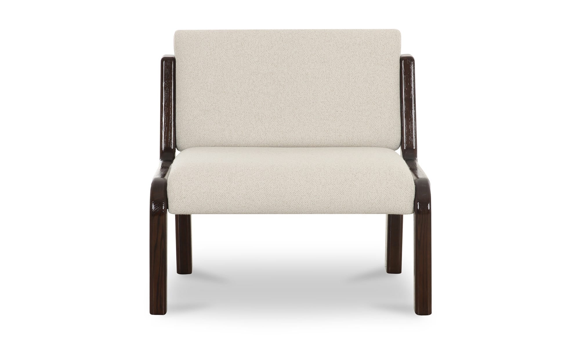 The Edie accent chair seamlessly blends vintage allure with contemporary elegance. Its sleek, armless silhouette draws inspiration from mid-century design, while modern finishes reimagine the design for contemporary spaces. Luxurious, textured upholstery embraces a wide seat, while a high-gloss solid ash frame in rich dark brown adds bold sophistication.