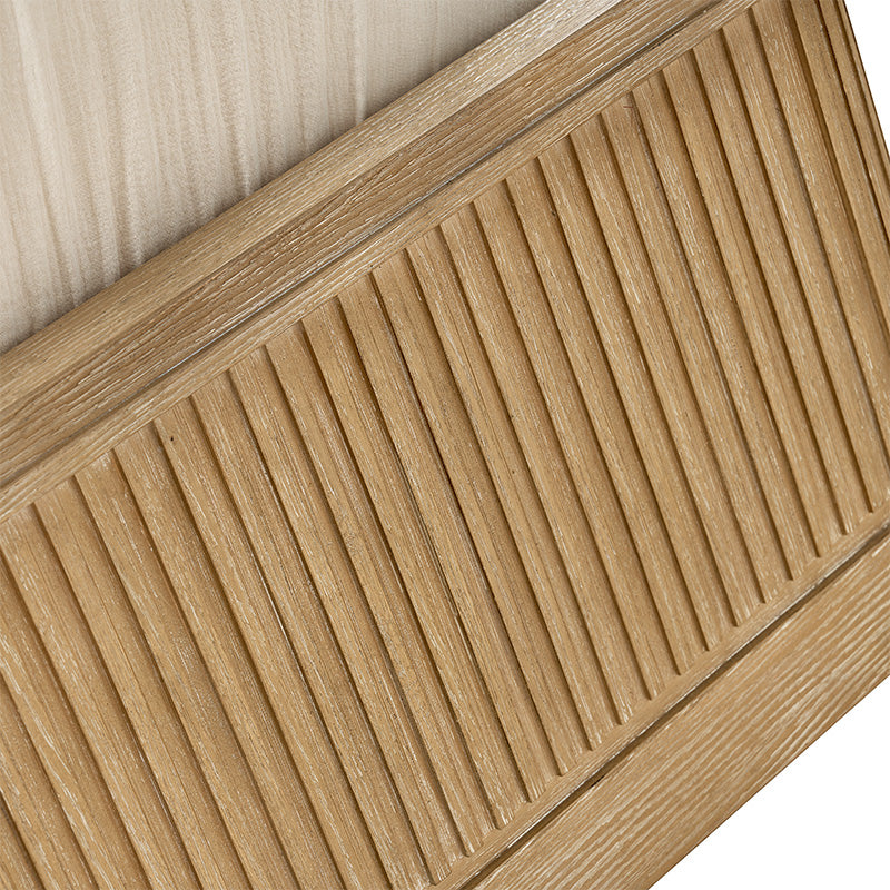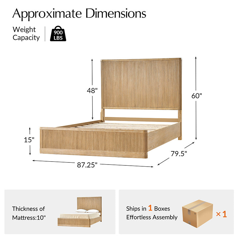 Bring refined texture and natural charm to your bedroom with this modern solid wood platform bed. Crafted from a blend of solid and engineered hardwood, the surface is finished with rich American oak grain for a warm and organic look. The fluted design features vertical reeding that adds dimension and a smooth tactile feel, perfectly balancing sleek lines with subtle detailing. The platform bed is available in both King and Queen sizes, making it a versatile choice for rooms of different sizes and layouts. Its minimalist profile and sturdy wooden frame offer reliable support, keeping your space clean and uncluttered. Designed for both aesthetic appeal and durability, this bed pairs effortlessly with modern interiors. Assembly is easy and manageable, just two people and about an hour to put everything together. Whether you're setting up a master suite or refreshing a guest room, this fluted platform bed offers a sophisticated foundation for restful nights and stylish living.