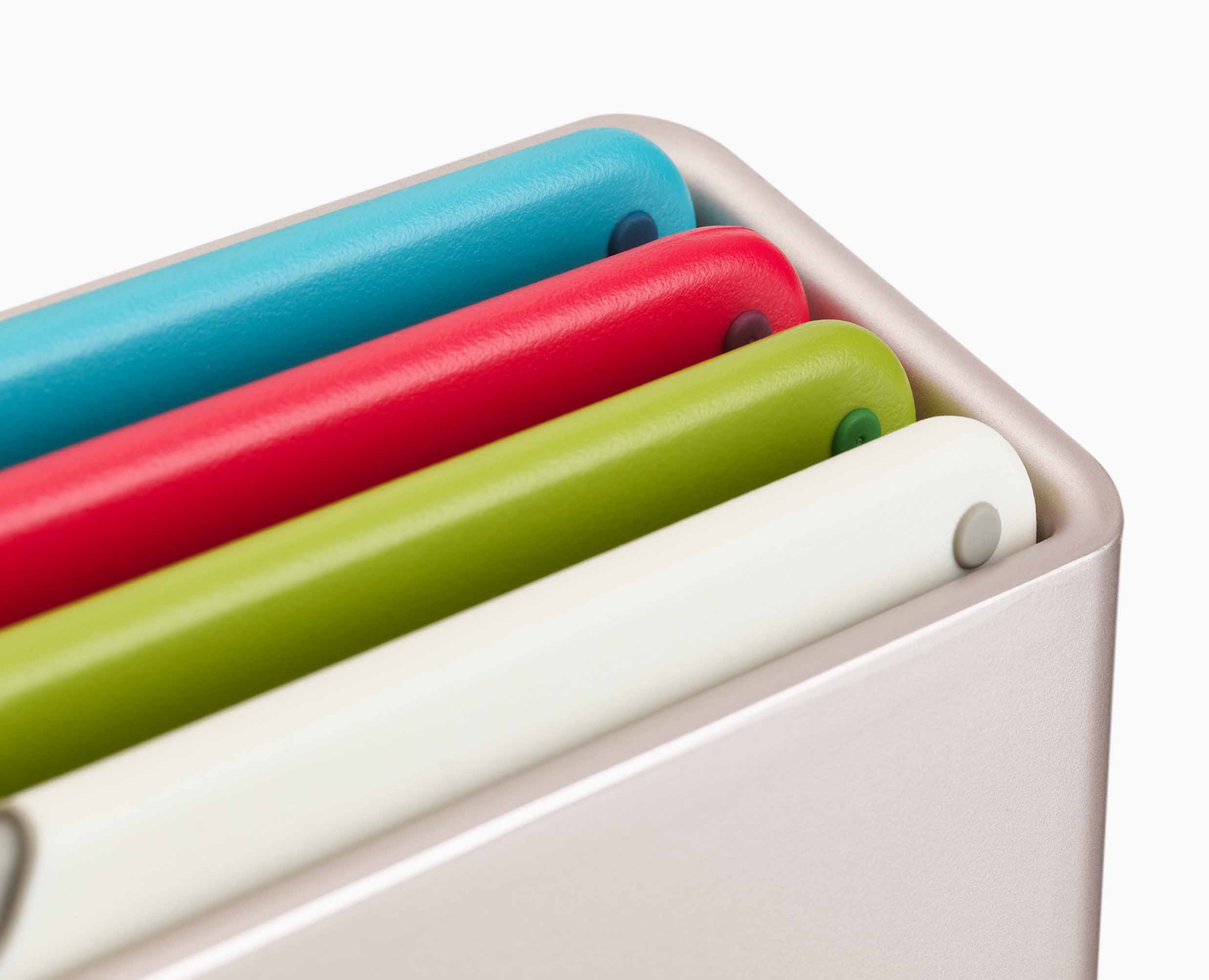Every great meal starts with a great chopping board, so we designed Folio™ Icon to make the food-prep process more efficient and enjoyable. Our bestselling chopping board set includes four colour-coded boards each featuring an illustrated icon to help prevent cross-contamination. Each board has a knife-friendly, textured surface and non-slip feet for safer slicing, chopping and dicing, and they all store inside a slimline storage case for ultimate organisation.