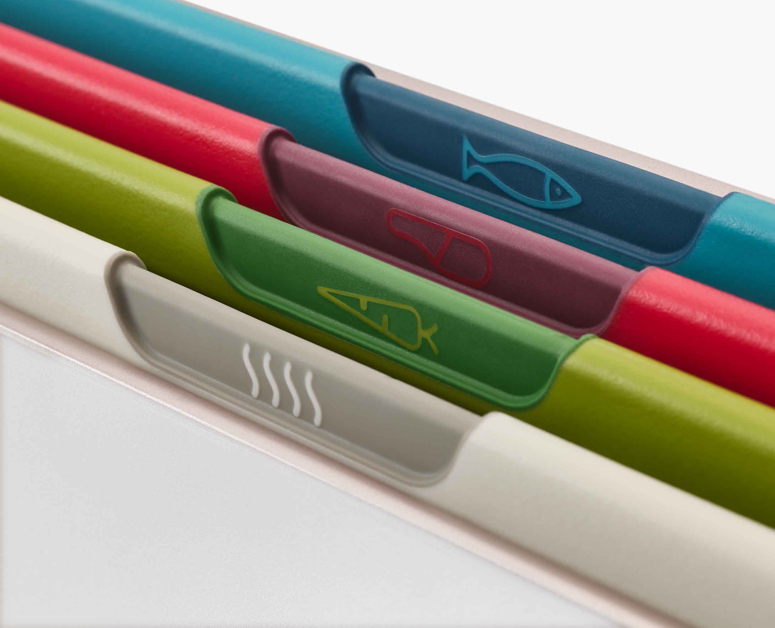 Every great meal starts with a great chopping board, so we designed Folio™ Icon to make the food-prep process more efficient and enjoyable. Our bestselling chopping board set includes four colour-coded boards each featuring an illustrated icon to help prevent cross-contamination. Each board has a knife-friendly, textured surface and non-slip feet for safer slicing, chopping and dicing, and they all store inside a slimline storage case for ultimate organisation.