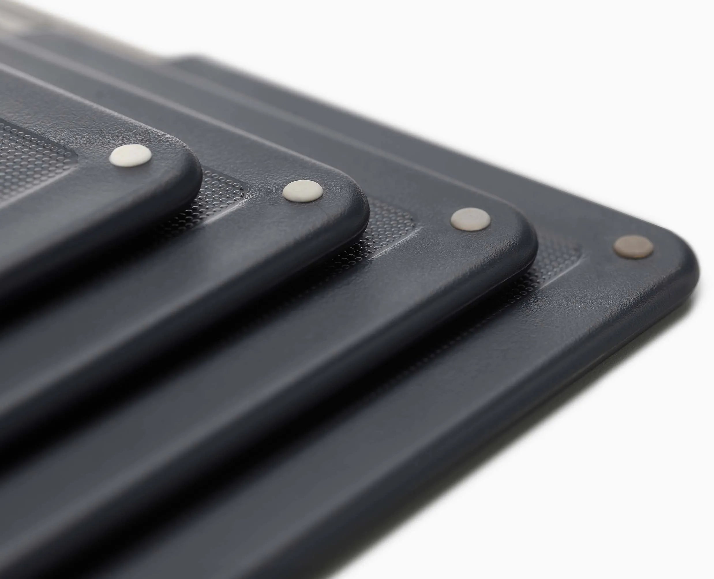 Our 4-piece rose gold chopping board set, Folio™ Steel, is perfect for keeping all your boards organised and easy to access. Each chopping board features knife-friendly textured surfaces and colour-coded details to help make food prep more hygienic and efficient. The finishing touch? A stainless-steel case that keeps the boards neat and tidy on the worktop.