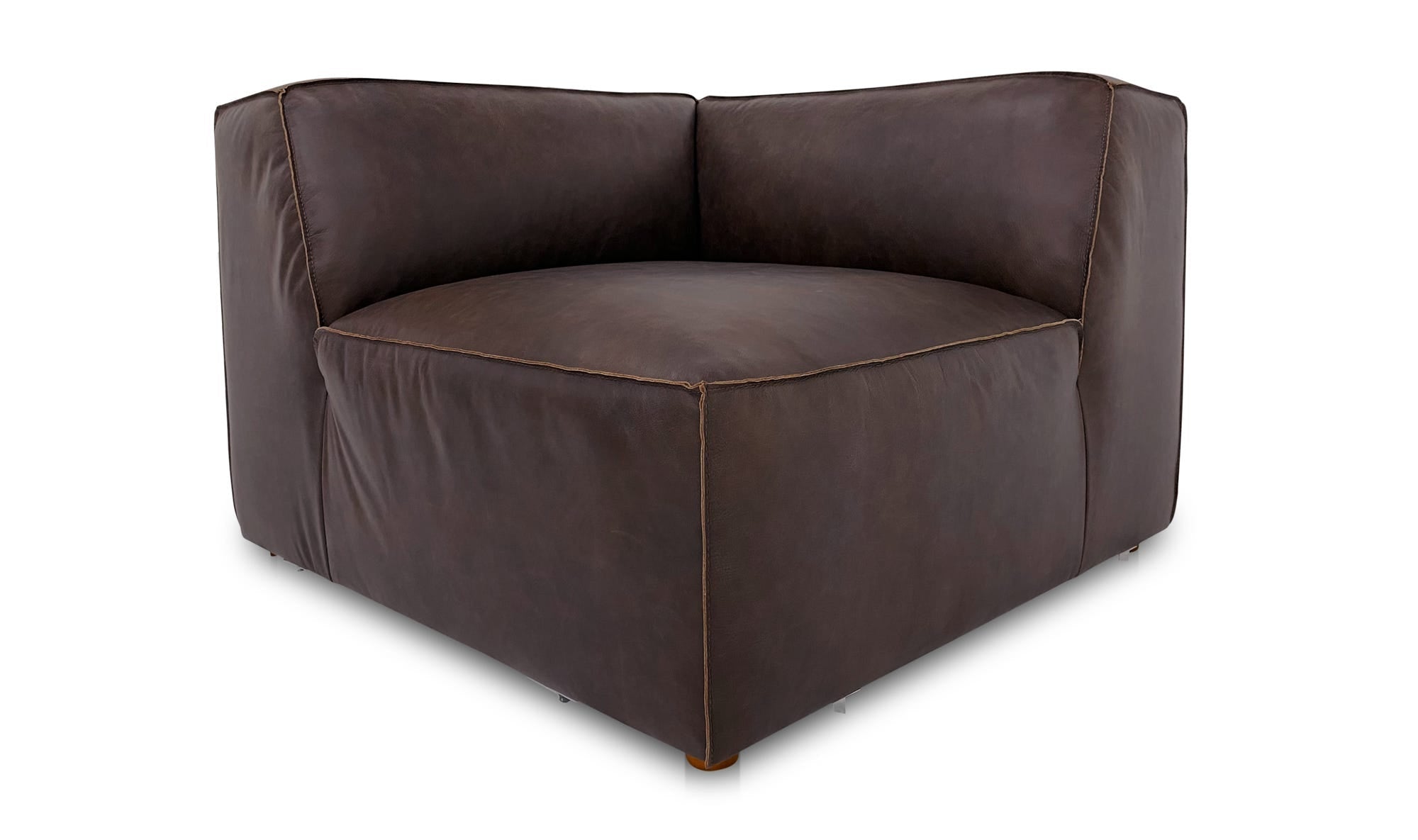 The Form collection is a perfect example of how different shapes and moveable pieces can support a social setting, comfortable lounging, as well as a casual workday. Configure Form into a collage of comfort as the collection includes slipper and corner chairs, as well as an ottoman. All items contribute to a build for flexible living, whether you require an entire L sectional, cozy nook, or a more private relaxation corner. Contemporary in both style and function, Form features top-grain leather upholstery that will age into a beautiful patina, reverse stitching accents throughout, and emphasis placed on its plump, slightly rounded silhouette with feather and fiber-fill cushioning.