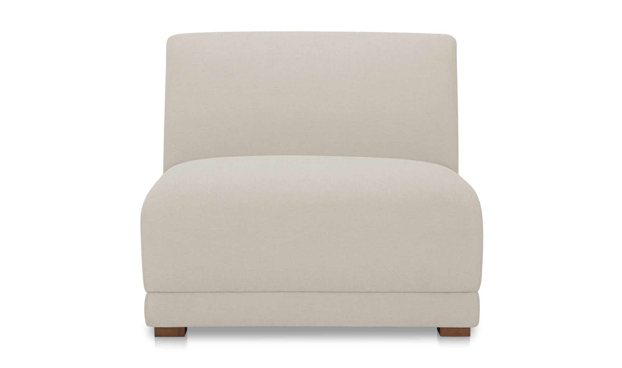 The Fraser slipper chair's contemporary design infuses the elegance of gentle slopes with linear precision, harmoniously merging soft curves and angular forms into its 60s and 70s-inspired aesthetic. Crafted on a minimalist plinth base and upholstered in sumptuous 100% polyester, foam and fiber seating invites serene repose.