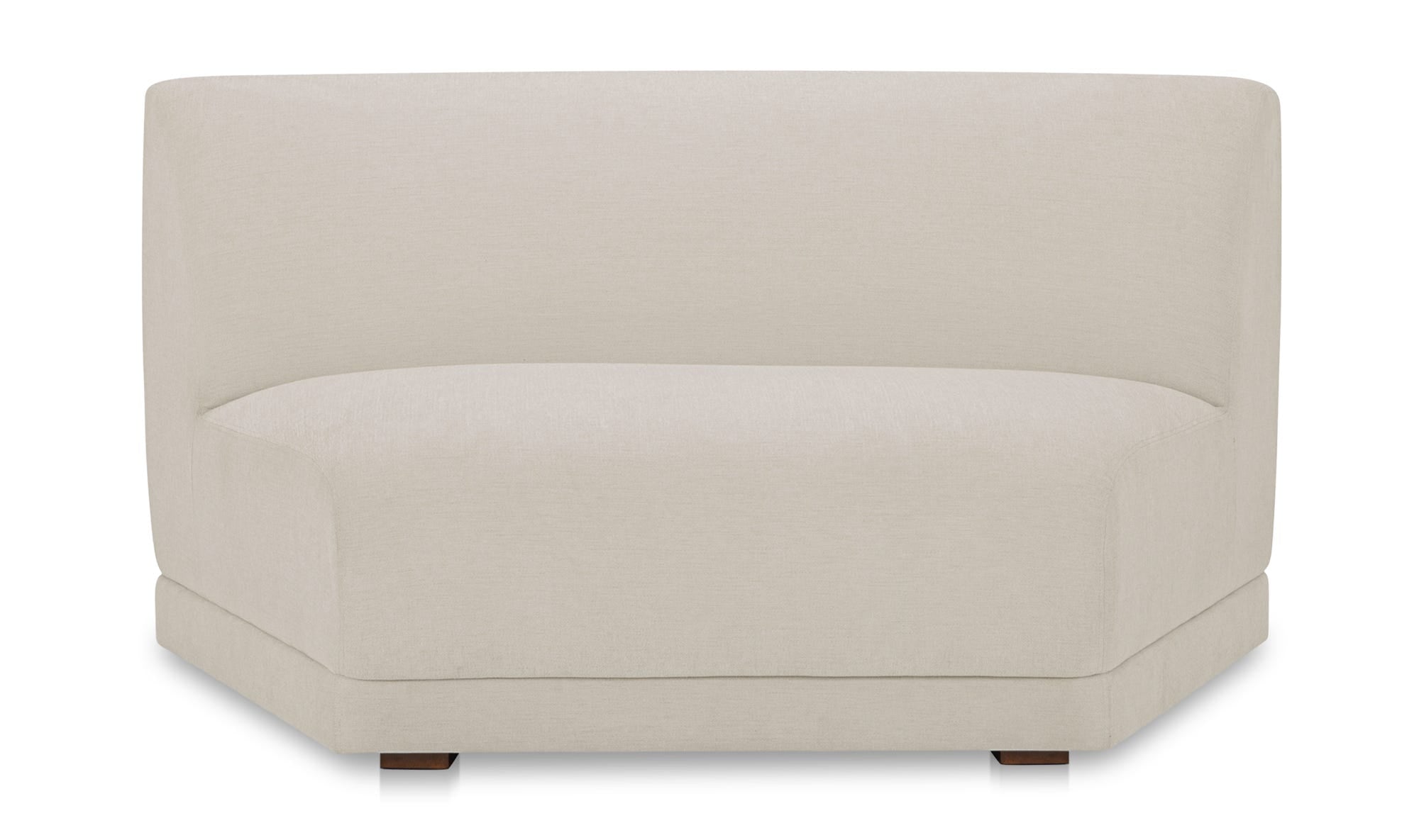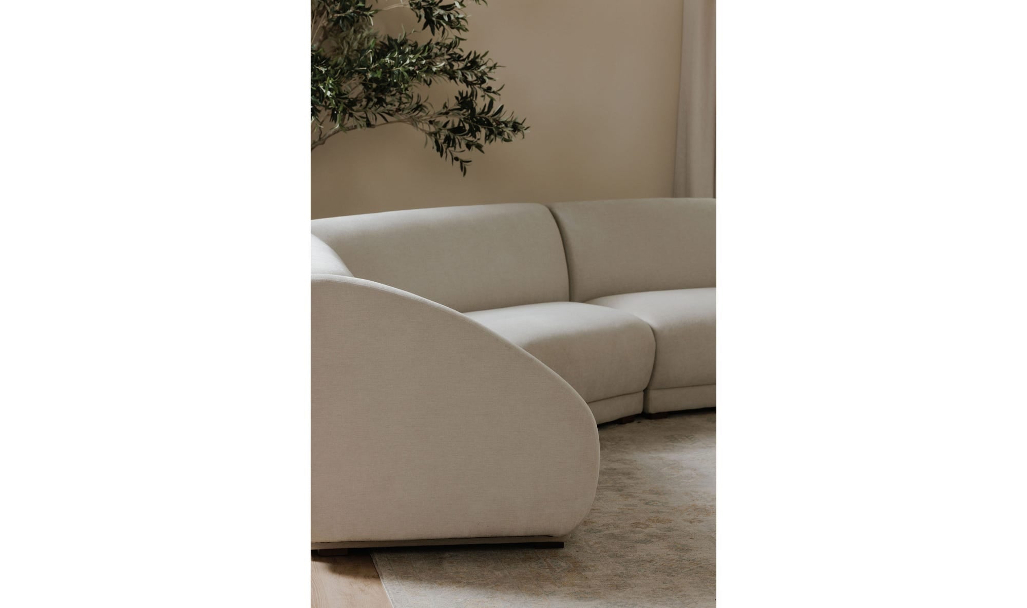 The Fraser wedge slipper chair's contemporary design infuses the elegance of gentle slopes with linear precision, harmoniously merging soft curves and angular forms into its 60s and 70s-inspired aesthetic. Crafted on a minimalist plinth base and upholstered in sumptuous 100% polyester, foam and fiber seating invites serene repose.