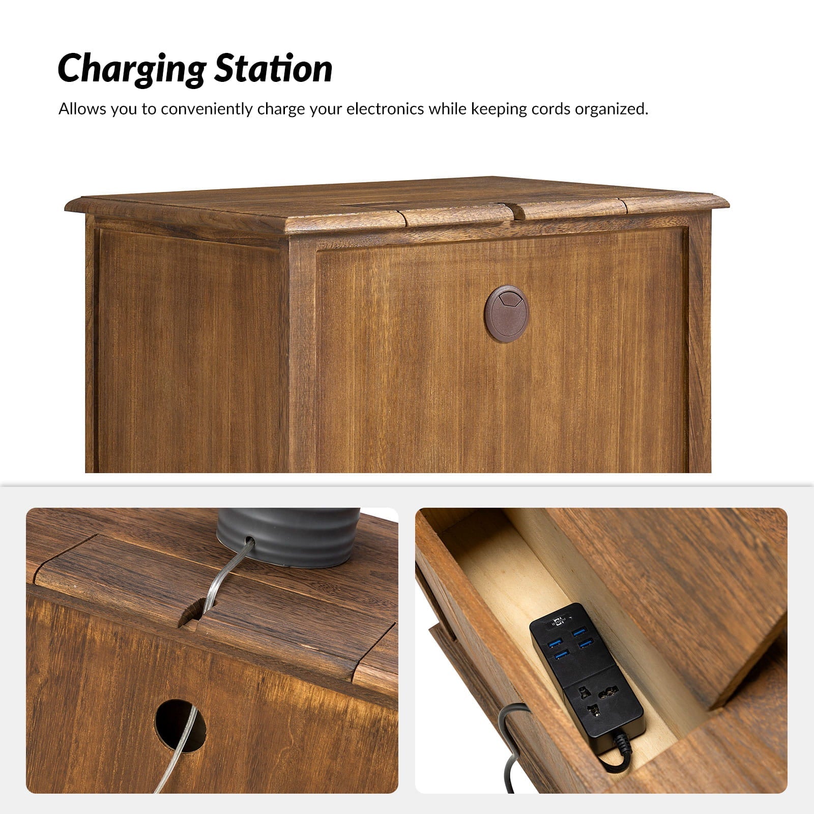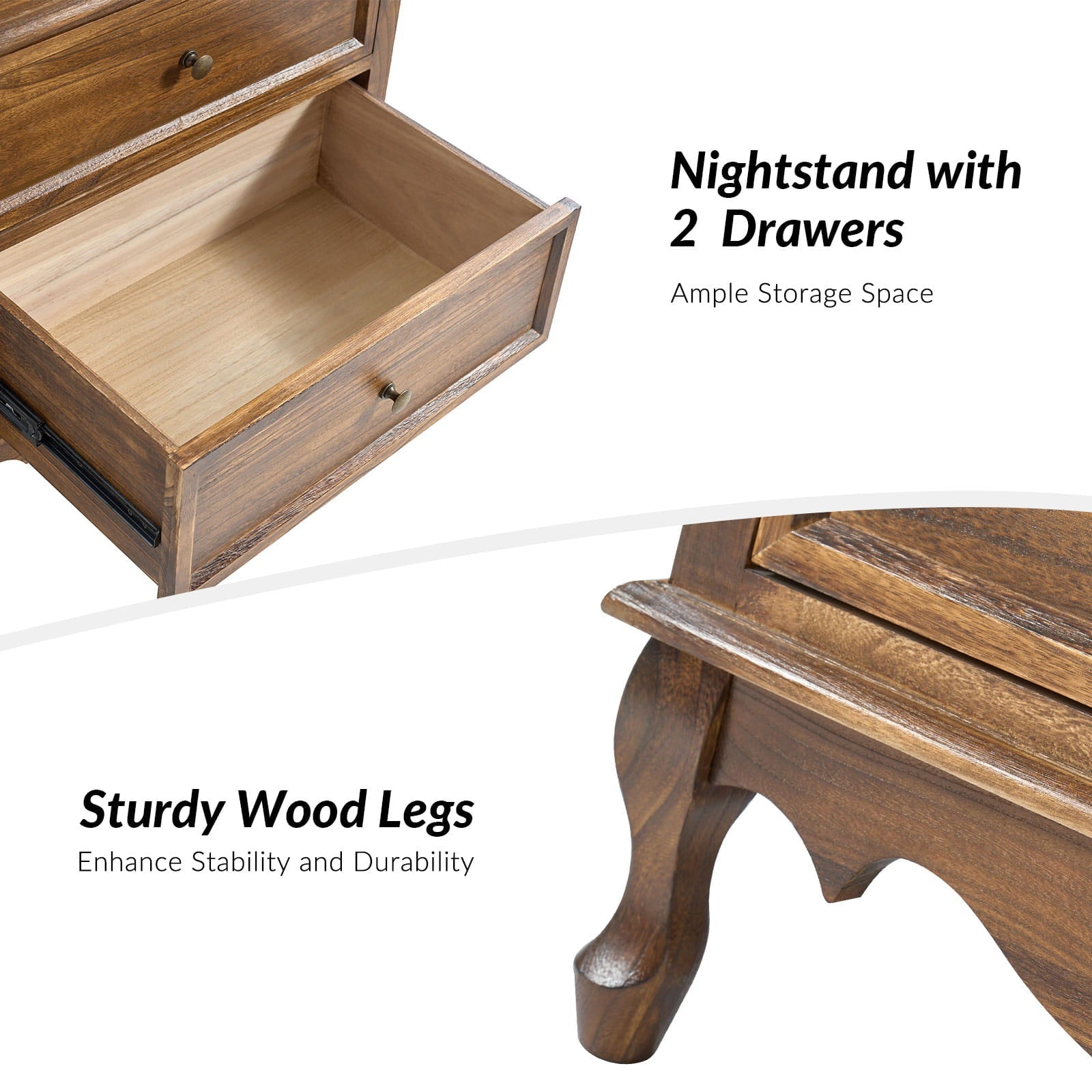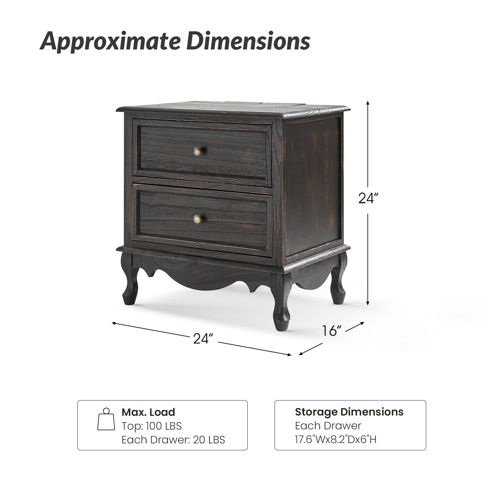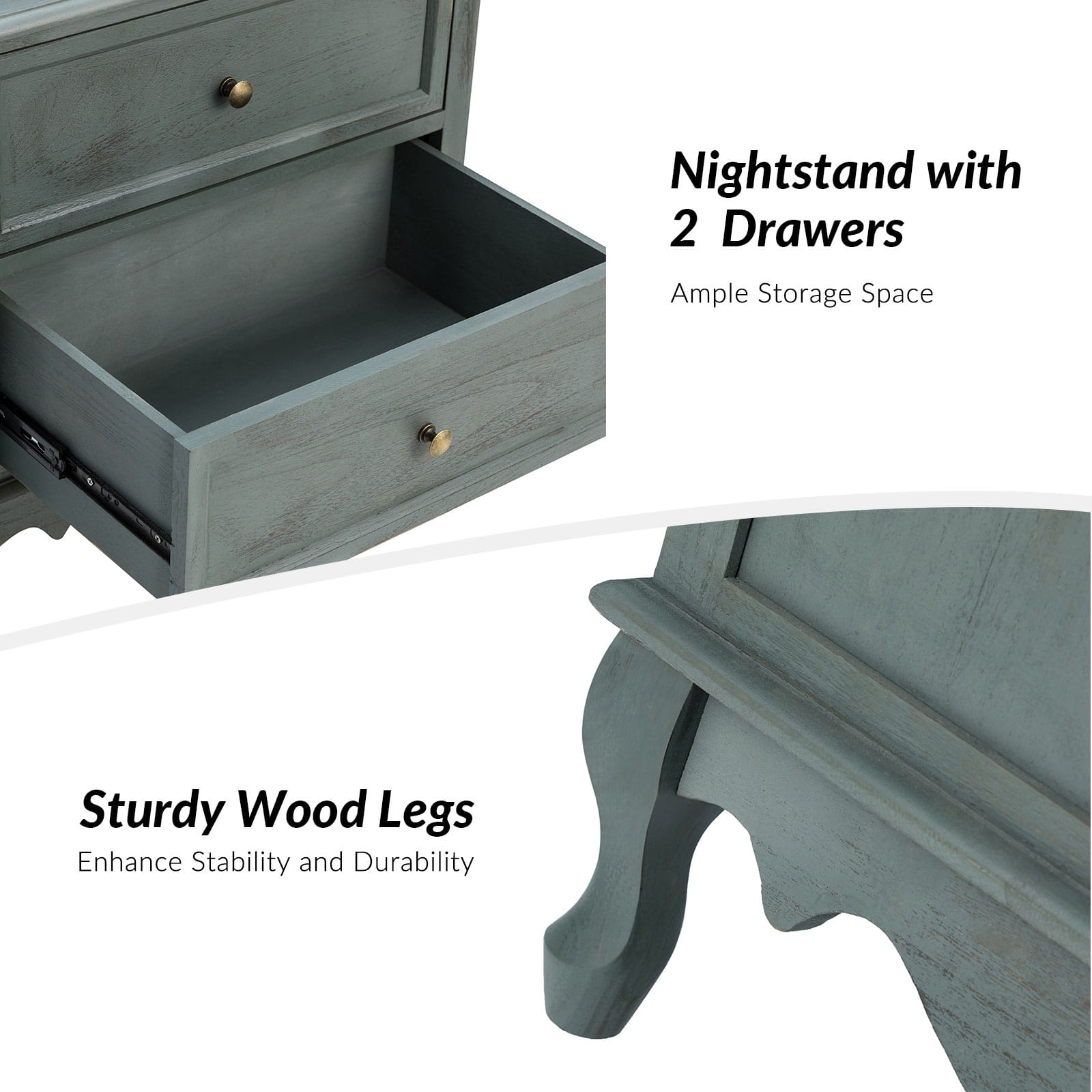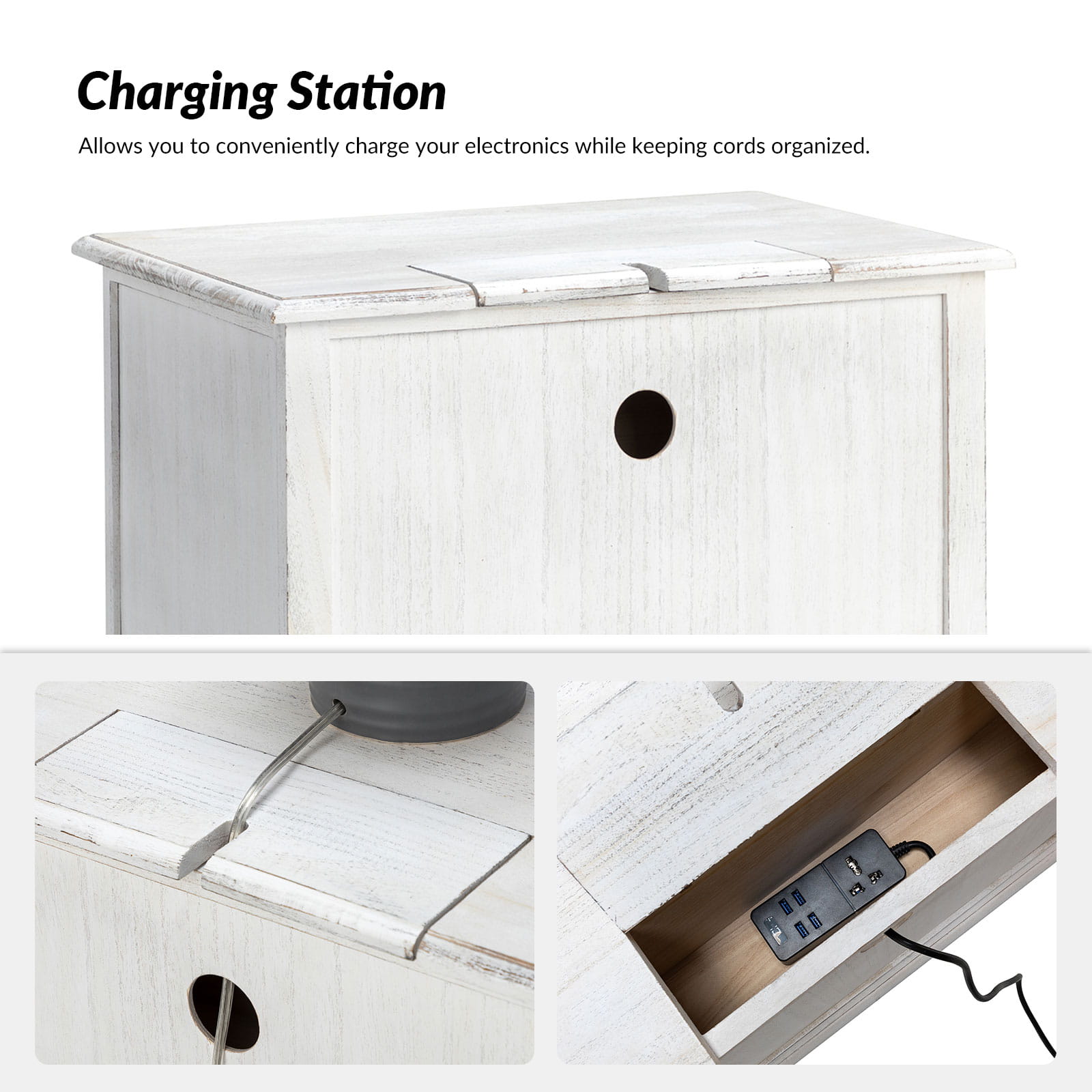 A marriage of comfortable experience and transitional style, this French country nightstand finished in a stylish yet glamorous profile is a good addition to elevating elegance. The nightstand includes 2 convenient and practical drawers with smooth metal drawer slides and durable metal handles. The top of the nightstand has a charging station space where you can charge your electronics and also manage your cords, helping you with annoying wires for a neater and more aesthetically pleasing look. Featuring a manufactured frame finished in a glamorous hue for perfect stability and durability, this reliable design can accompany you for a long time and share. Made of a high-quality wood frame, this sturdy frame showcases sleek lines and boasts a geometric shape, adding a striking look to your room. Wake up your style with this chic nightstand and put some sophistication into your daily routine, from the bedroom to the living space.