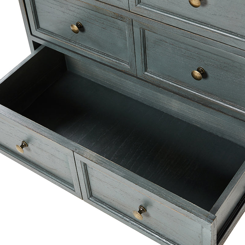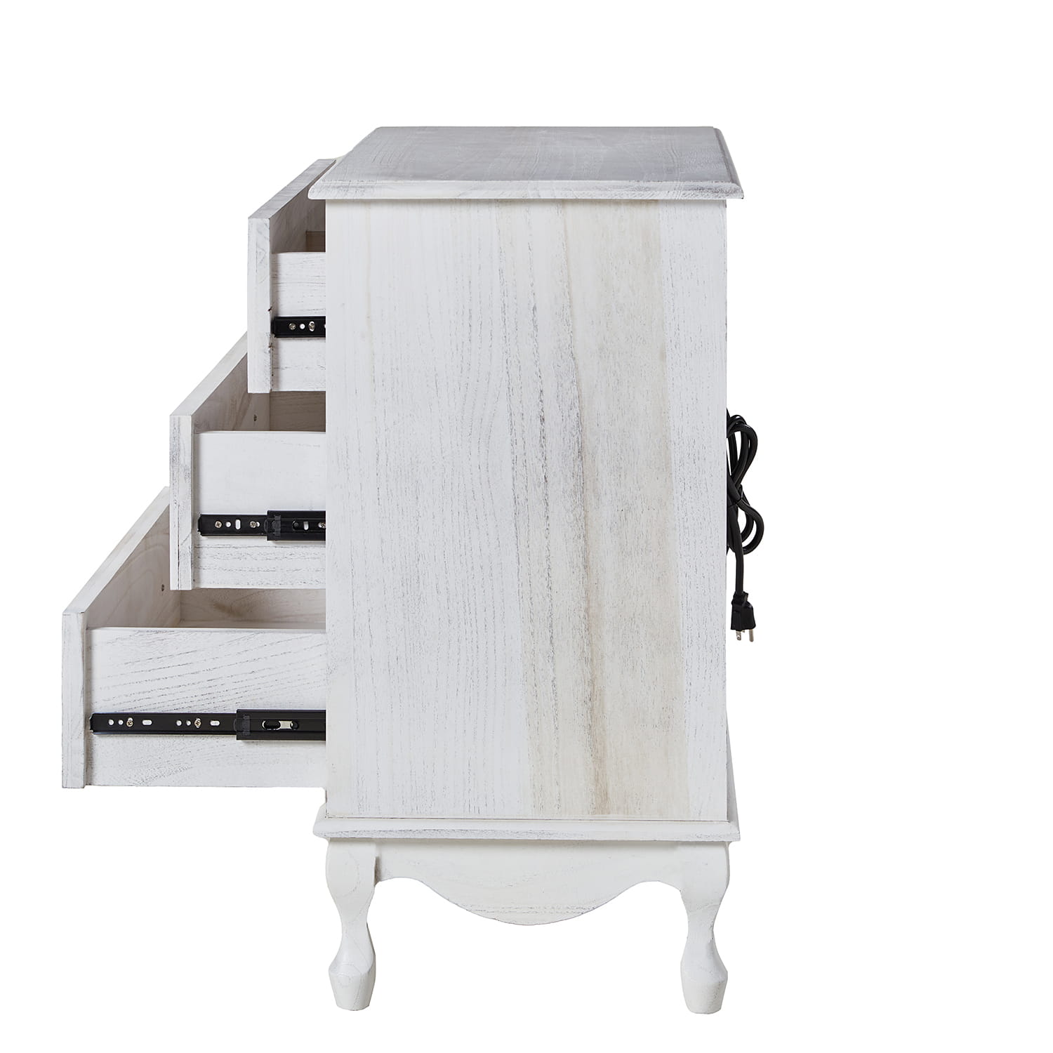 Experience timeless comfort and rustic charm with the farmhouse and traditional-style cabinet. Distressed to perfection, this cabinet exudes an aged yet inviting aesthetic, seamlessly blending old-world charm with modern functionality. The built-in power strip discreetly enhances convenience, allowing you to stay connected effortlessly. Adorned with a faux six-drawer front, the cabinet encapsulates vintage allure while cleverly concealing a spacious drawer compartment for your organizational needs. Supported by sturdy solid wood legs and adjustable feet, this cabinet strikes the perfect balance between classic design and contemporary utility, making it an ideal addition to any workspace or living area seeking a touch of enduring elegance.