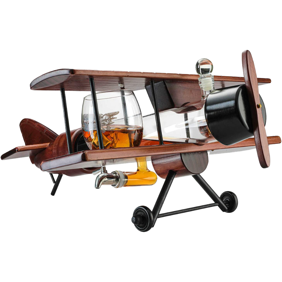 (EU ONLY) Whiskey-Dekanter-Set und Gläser, antikes Holz-Flugzeug – The Wine Savant Whiskey Geschenkset und 2 Flugzeuggläser, Pilotengeschenk mit beweglichen Teilen, alkoholbezogenes Geschenk, groß, 53.3 cm