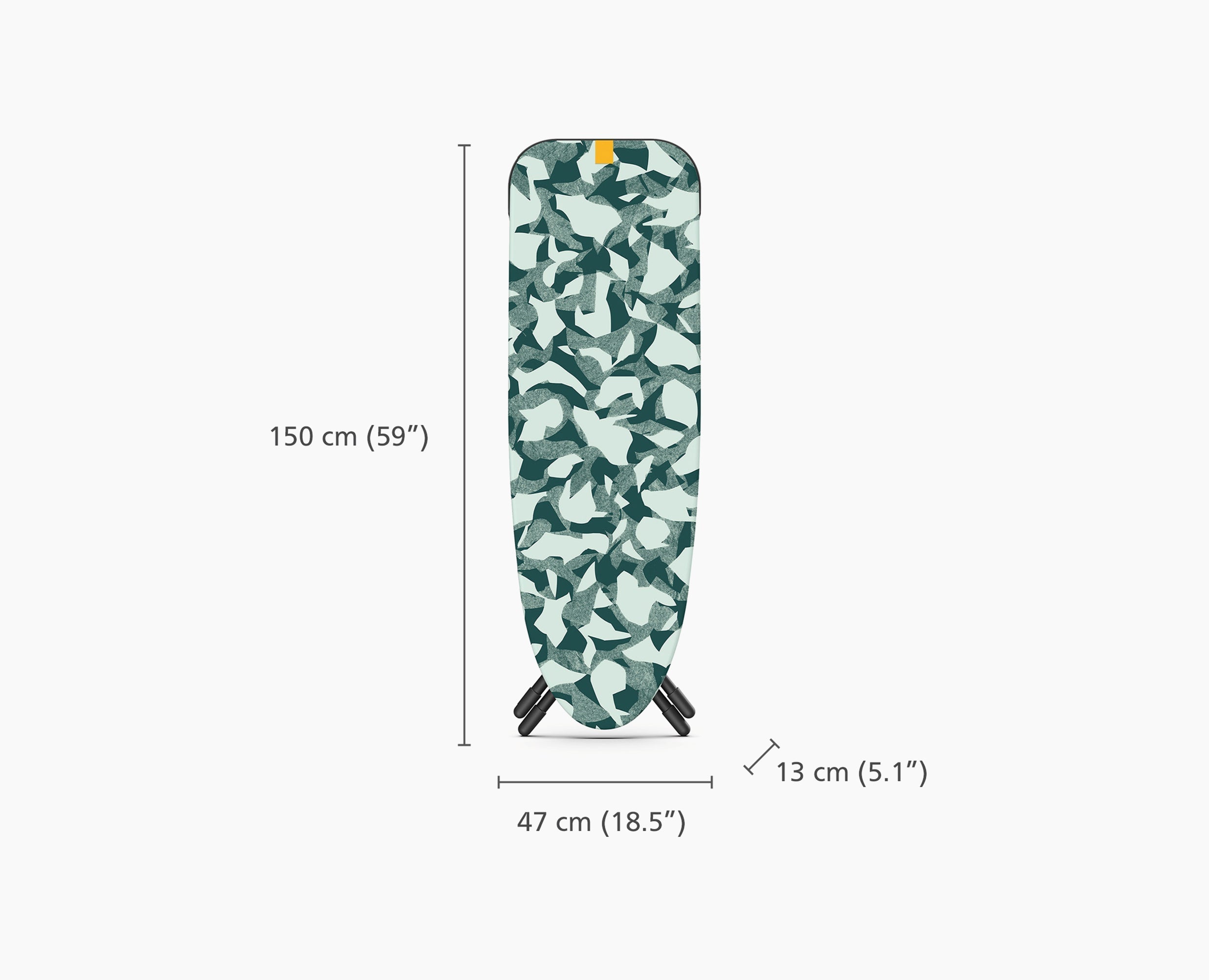 This 135cm green ironing board offers a fast and simple setup, with five adjustable height settings and an extra-large, retractable steam iron rest. When not in use, the board folds down slimly for compact storage.