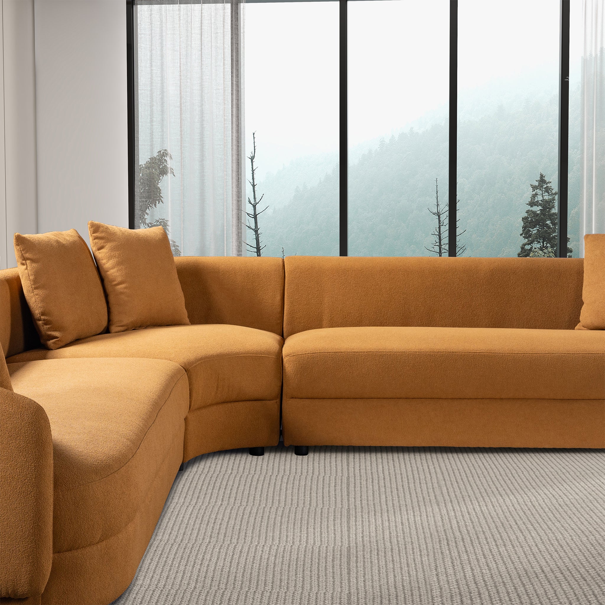 This Japandi mid-century contemporary L-shaped corner sectional couch will completely transform your living area. The sleek spherical profile and symmetrical design offer...