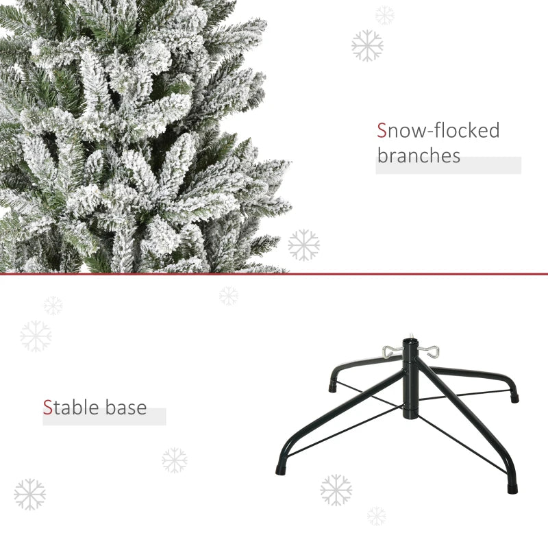 Bring nature home without the mess with this artificial Christmas tree from HOMCOM. Our beautiful holiday tree provides a great alternative to conventional trees with easy set up and little mess or maintenance required. Designed in a pine tree shape, this flocked Christmas tree consists of full-bodied and realistic plastic tips. The white flocking gives a snowy atmosphere to your home. It's sure to be a striking centerpiece for your family's holiday decor this year and in years to come.