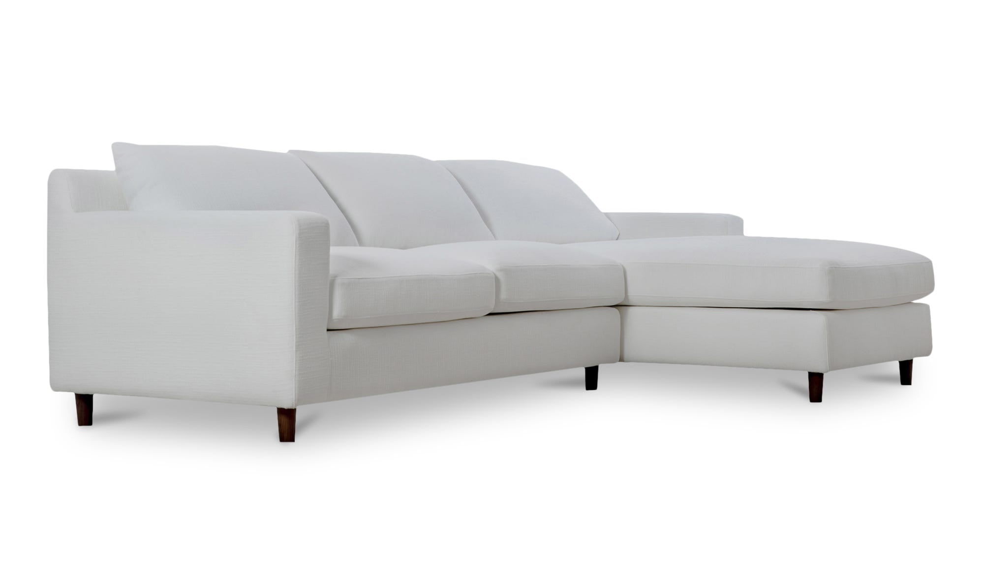 The Hutton sectional features soft-to-the-touch chenille fabric constructed from 100% polyester treated with C0 performance technology. A traditional higher back and tapered dark wood legs nod to mid-century aesthetics while providing contemporary coziness as a plush feather topper ensures unparalleled comfort.
