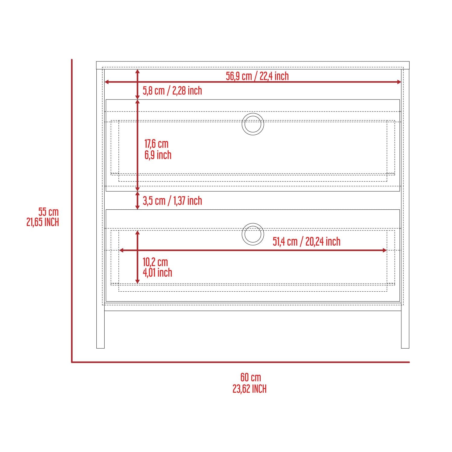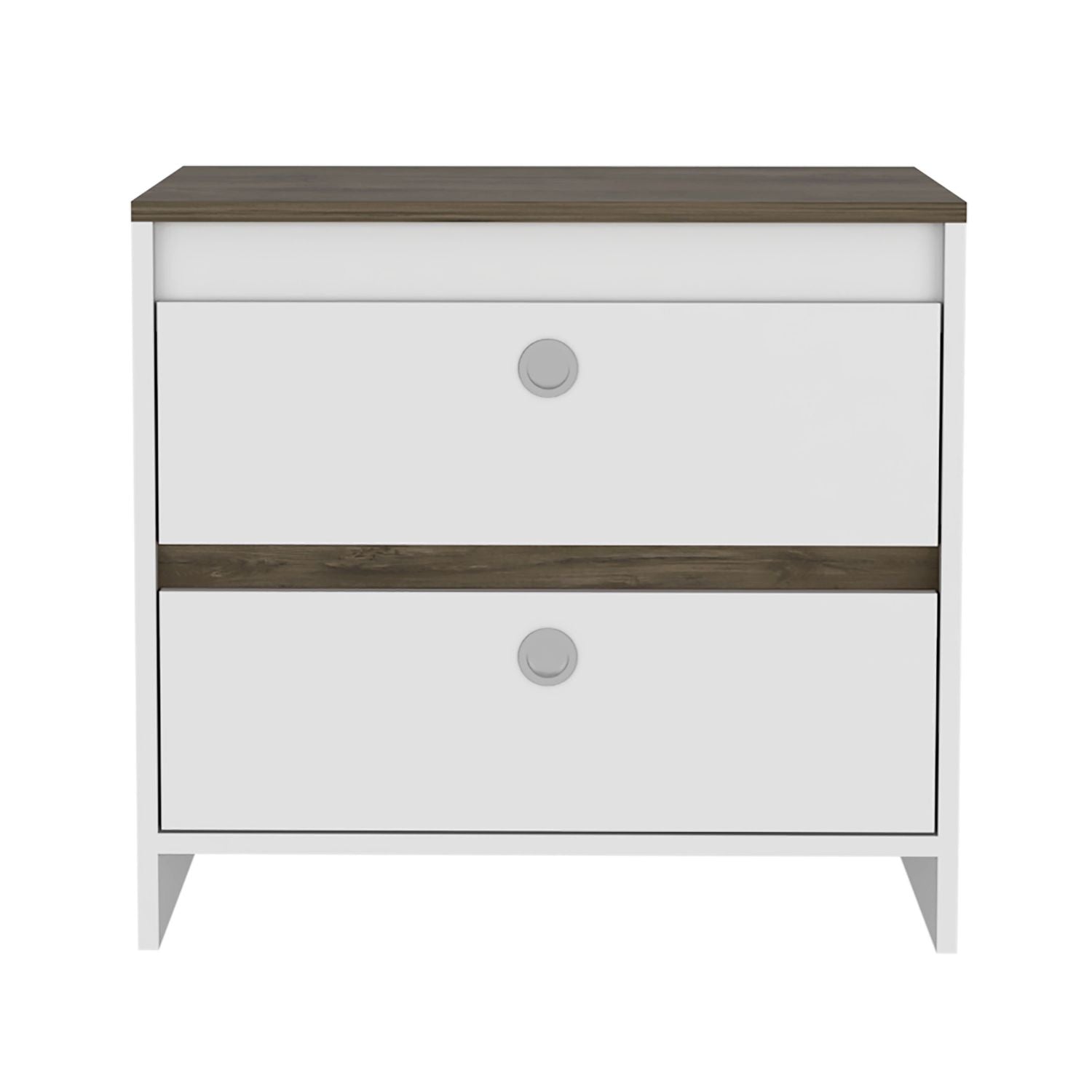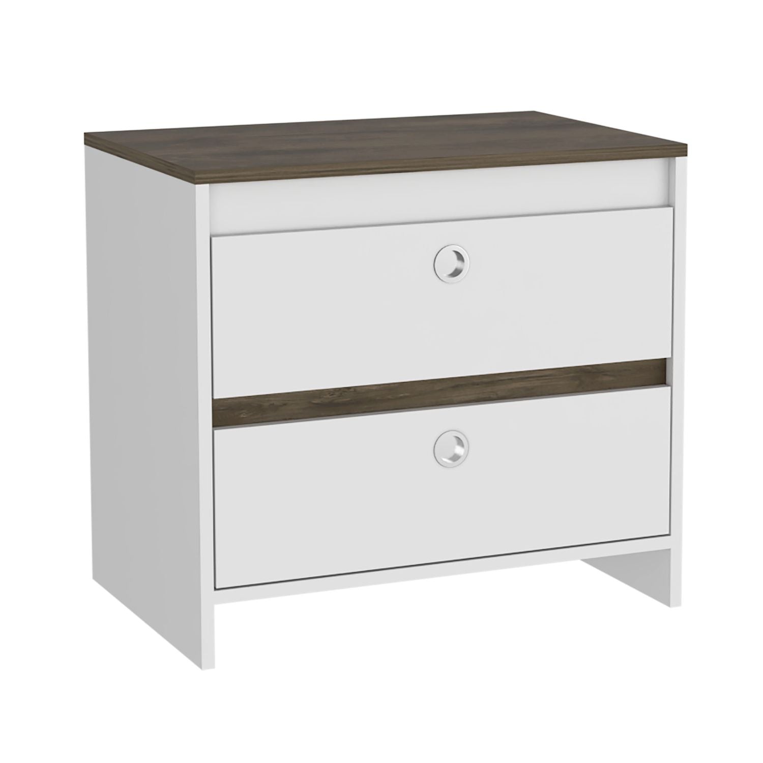 Idaly Nightstand is a versatile piece that will compliment your bedroom or living room perfectly. This Nightstand comes with 2 drawers that measure 20.24"W X 15"D X 6.9"H, with metal handles and metal rails for lasting product life. This Nightstand also features a spacious top Surface (23,62’’W X 15,75’’D) This Idaly Nightstand captures modern design and style with an amazing finish combination to stand out in your space. Designed with elegant white-dark Brown and black wengue manufactured wood finish.