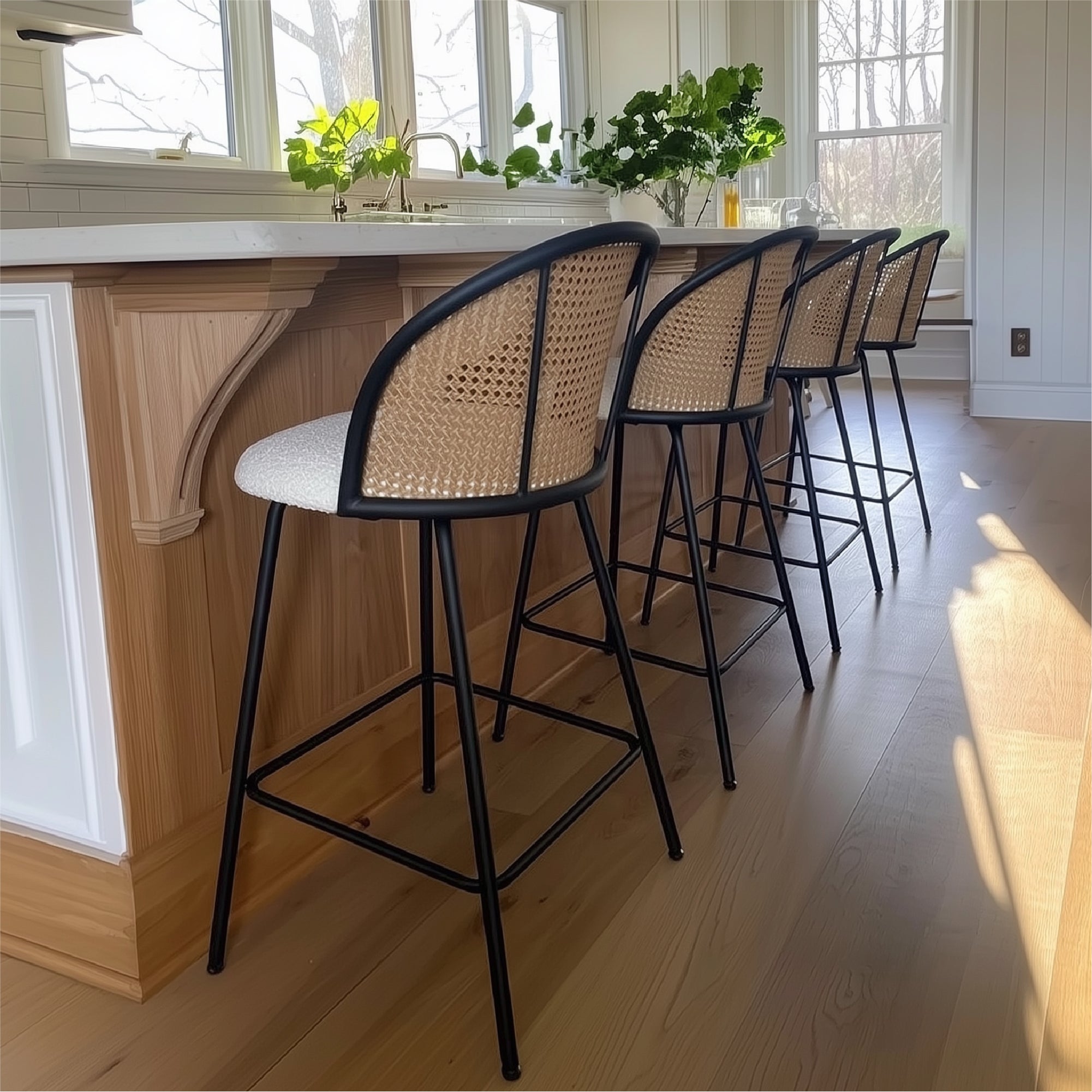 In addition, the set of 4 counter stools is easy to maintain. The materials used in its construction can withstand daily wear and tear. Wipe down the rattan backrest and the cushioned seat with a damp cloth for quick clean-up, so you can continue enjoying their beauty and functionality without stress. This practicality makes these stools a favorite among homeowners who appreciate quality, durability, and a touch of style. Feel confident that your choice will stand the test of time, making your investment worthwhile.