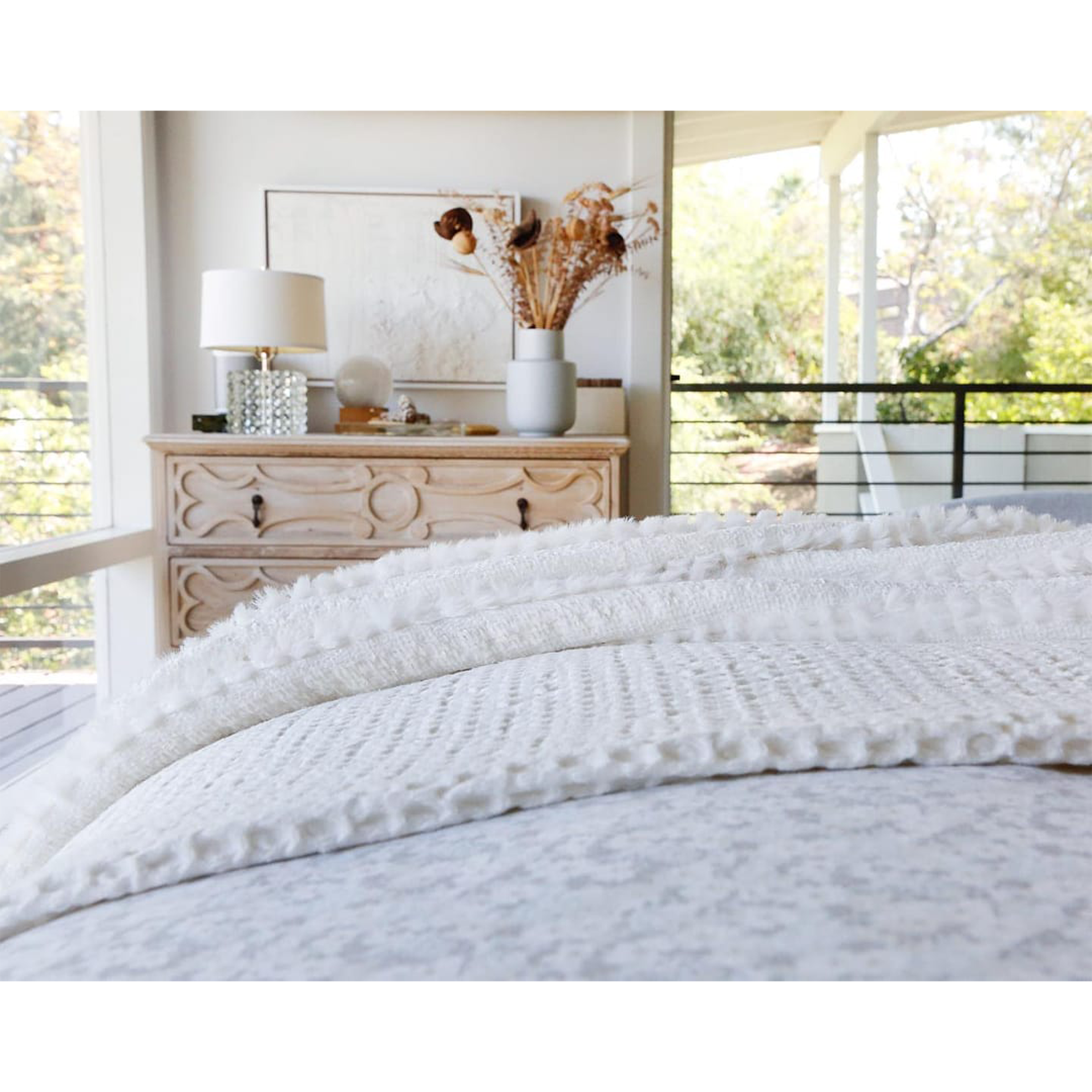 The June collection allows you to easily switch up your bed without any effort. It is reversible with a lovey floral pattern on one side and a simple stripe on the other, creating two different, yet fun looks. Made of 100% cotton, featuring shell-button closures. Made in Portugal.