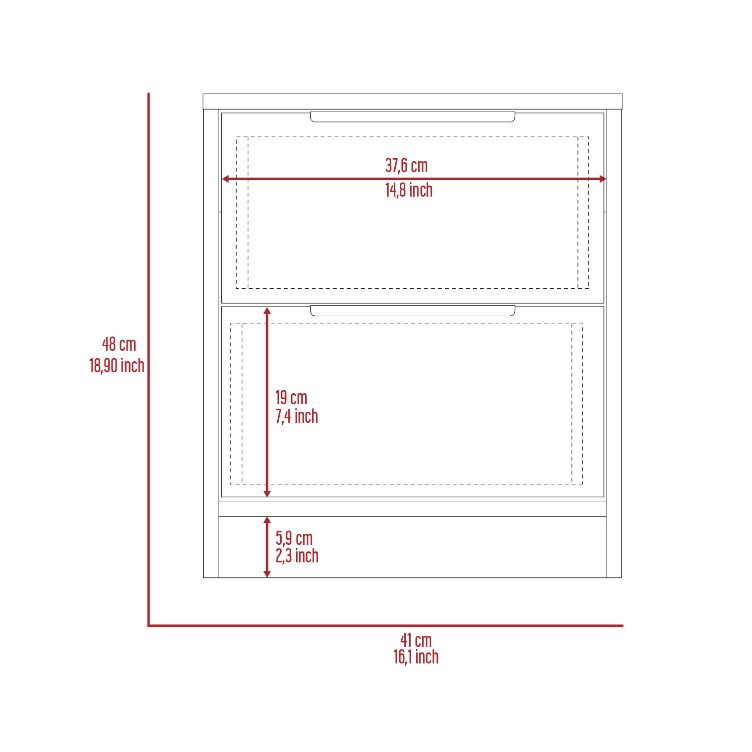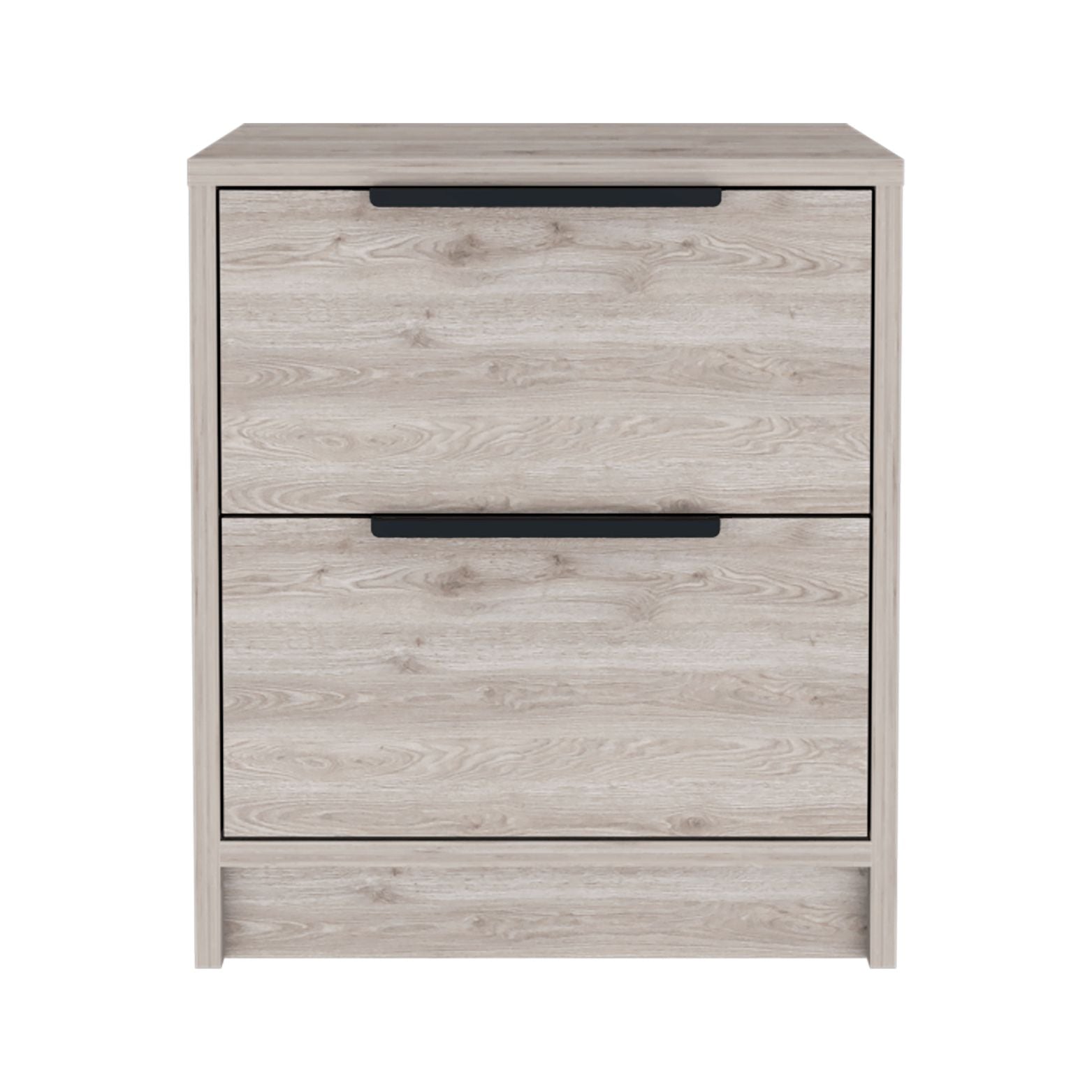 Kaia Nightstand is a multi-functional piece that will look great in your bedroom or living room, with a new look that mixes modern design with a sleek appearance. This nightstand features two metal-handled drawers (7,4''H X 14,8''W) and a large top area. This 19" High Nightstand combines modern form and style with a stunning finish to make a statement in any room. Designed with elegant light grey manufactured wood finish.