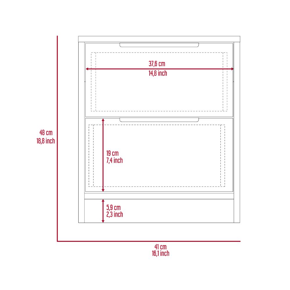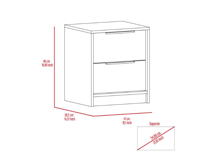 The Fontana Night Stand is a multi-functional piece that will look great in your bedroom or living room—designed with a resistant white particleboard finish—giving it a new look that mixes modern design with a sleek appearance. This nightstand features two metal-handled drawers(7,4''H X 14,8''W) and a large top area. This 19" High Nightstand combines modern form and style with a stunning finish to make a statement in any room.