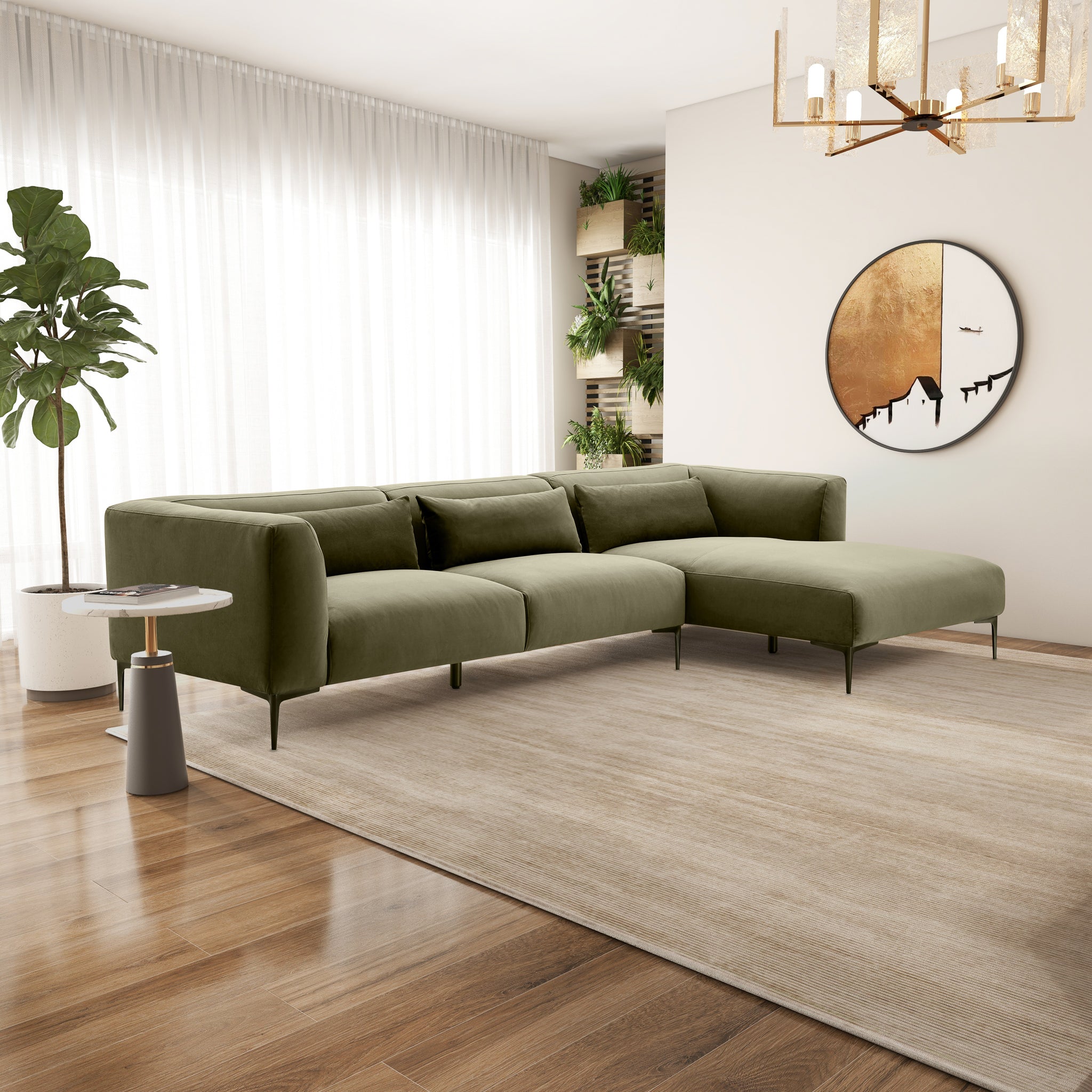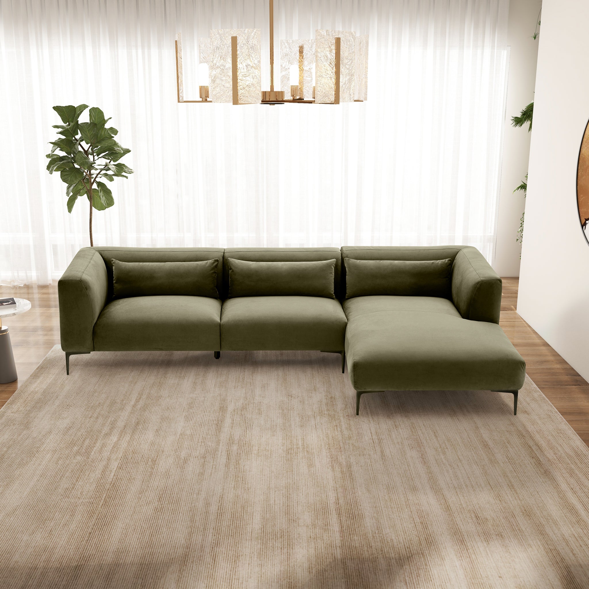 The L-shaped sectional sofa is a perfect addition to any living room, apartment, loft, or condo. With its Mid-Century Modern design, this classy and chic piece of living room furniture adds a touch of elegance to any space. Made with high-quality materials, it is pet-friendly and built to withstand everyday use. The velvet upholstery gives it a designer look while still being affordable. Whether you're entertaining guests in the living room or relaxing in the game room, this sectional couch sofa is the perfect choice for comfort and style. Due to studio shots, the product that will come to you may be one tone darker or lighter than expected.
