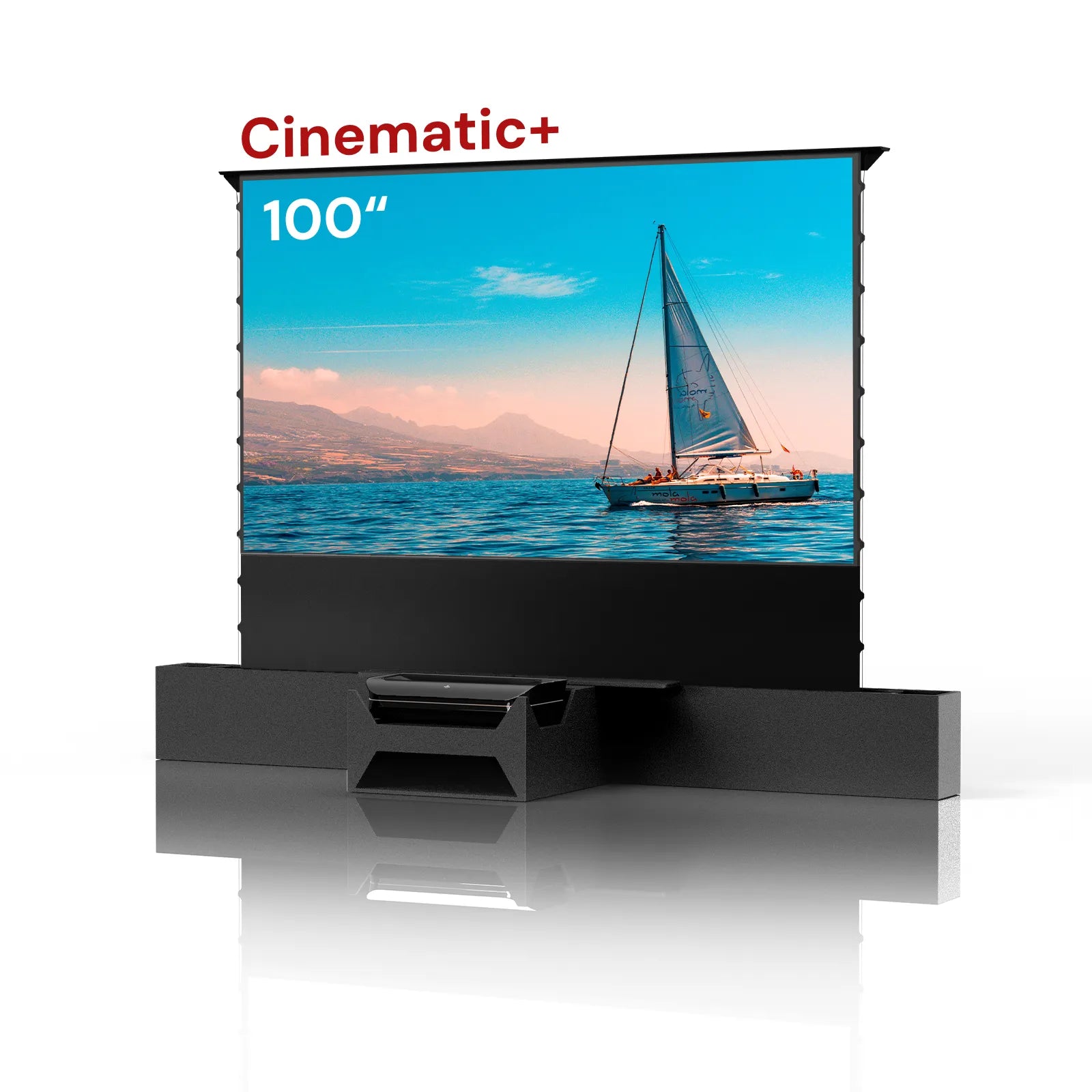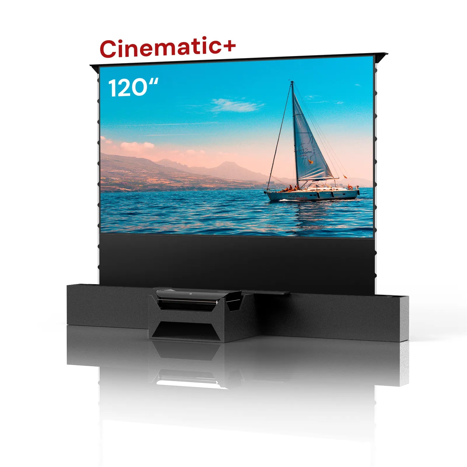 Fast and Easy Setup with Space-Saving Design: Forget complicated installations! Our electric pop-up/floor-rising series projector screen sets up in minutes. Just plug in the power cord, and our Wire Tension Technology ensures a flatness comparable to a glass surface. The screen seamlessly retracts when unused, optimizing space and maintaining a discreet allure.