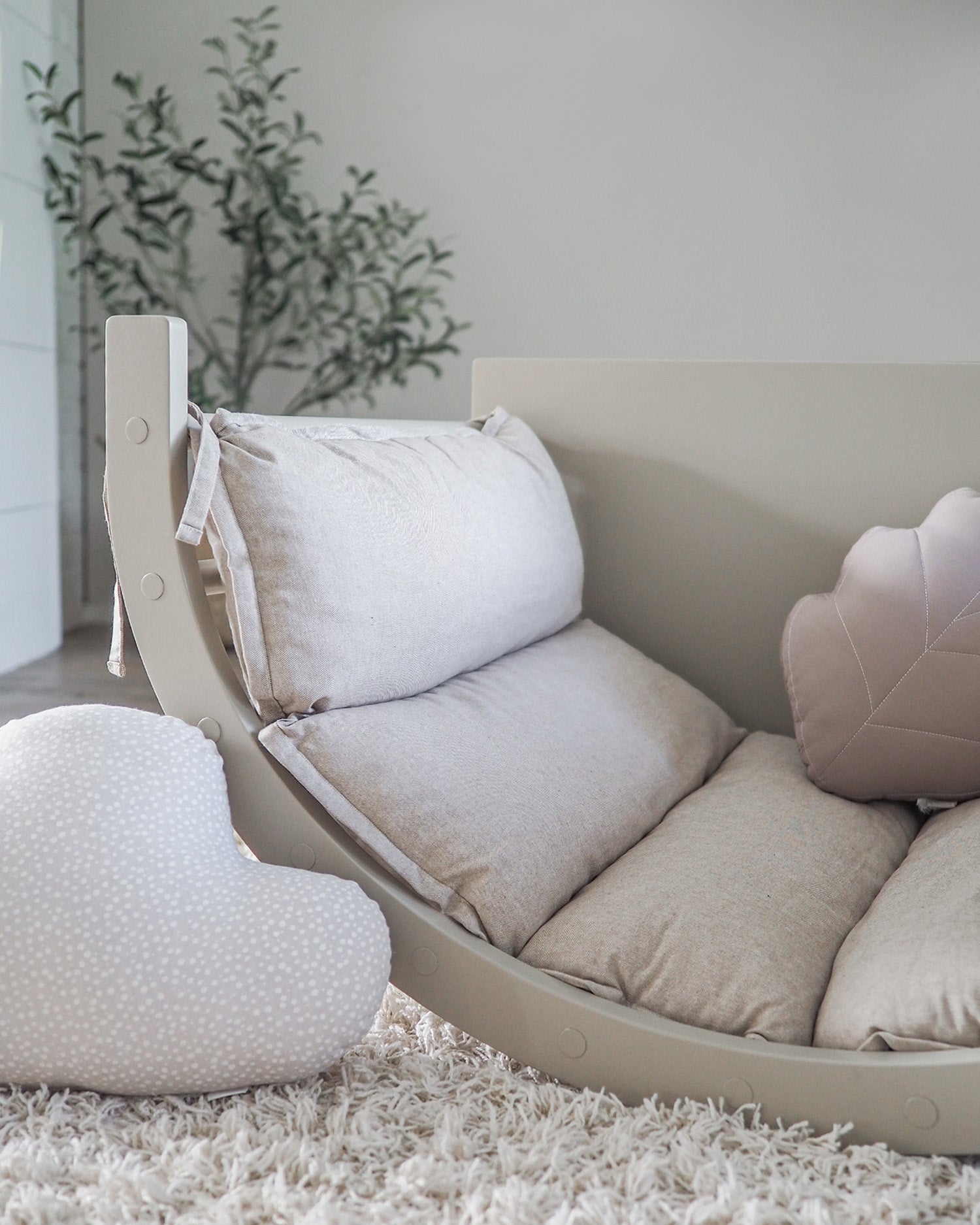 Our range of accessories complements the diverse functions of LUOTO climbing arch: KAURA cushion provides perfect comfort for rocking, TUOHI slide ramp adds excitement to climbing, and LUOTO stool transforms the product into a beautiful workstation for children's activities.