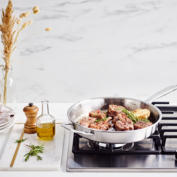 Our innovative 5-layer construction combines the superior heat conductivity of aluminum with the durability and versatility of stainless steel, creating the perfect balance of performance and longevity. These heirloom-quality pans deliver exceptional temperature control and heat retention, ensuring consistent results for everything from delicate sauces to perfectly seared steaks.