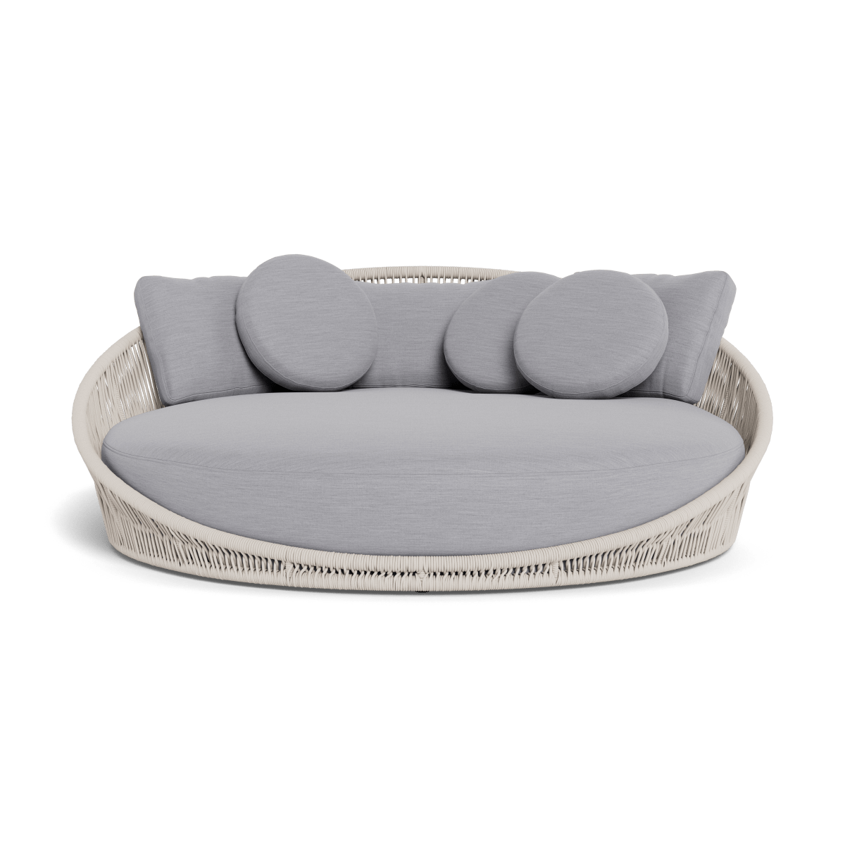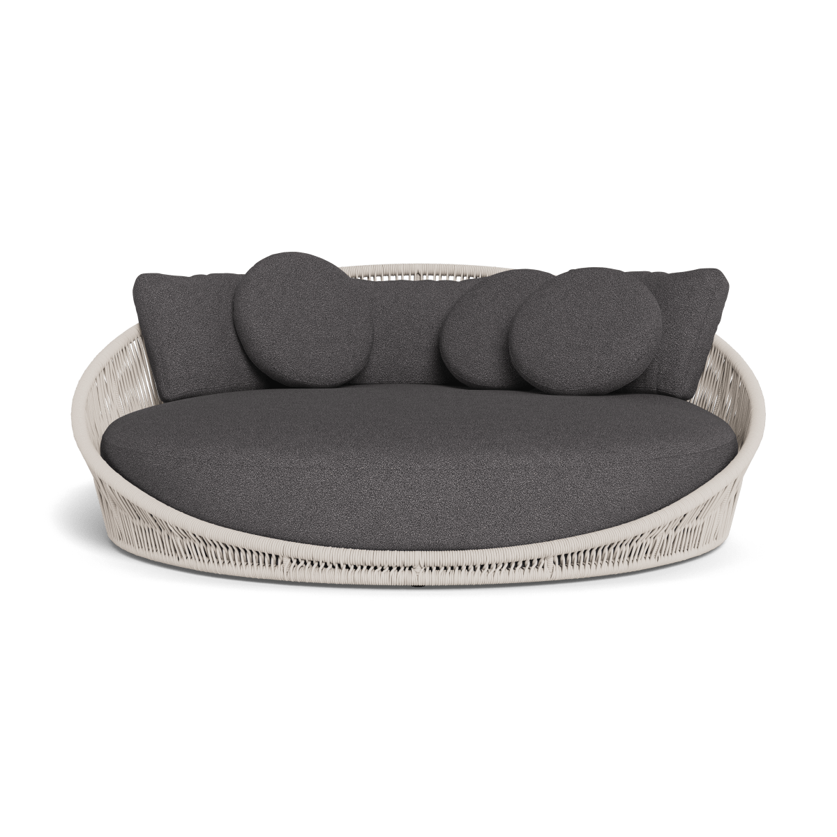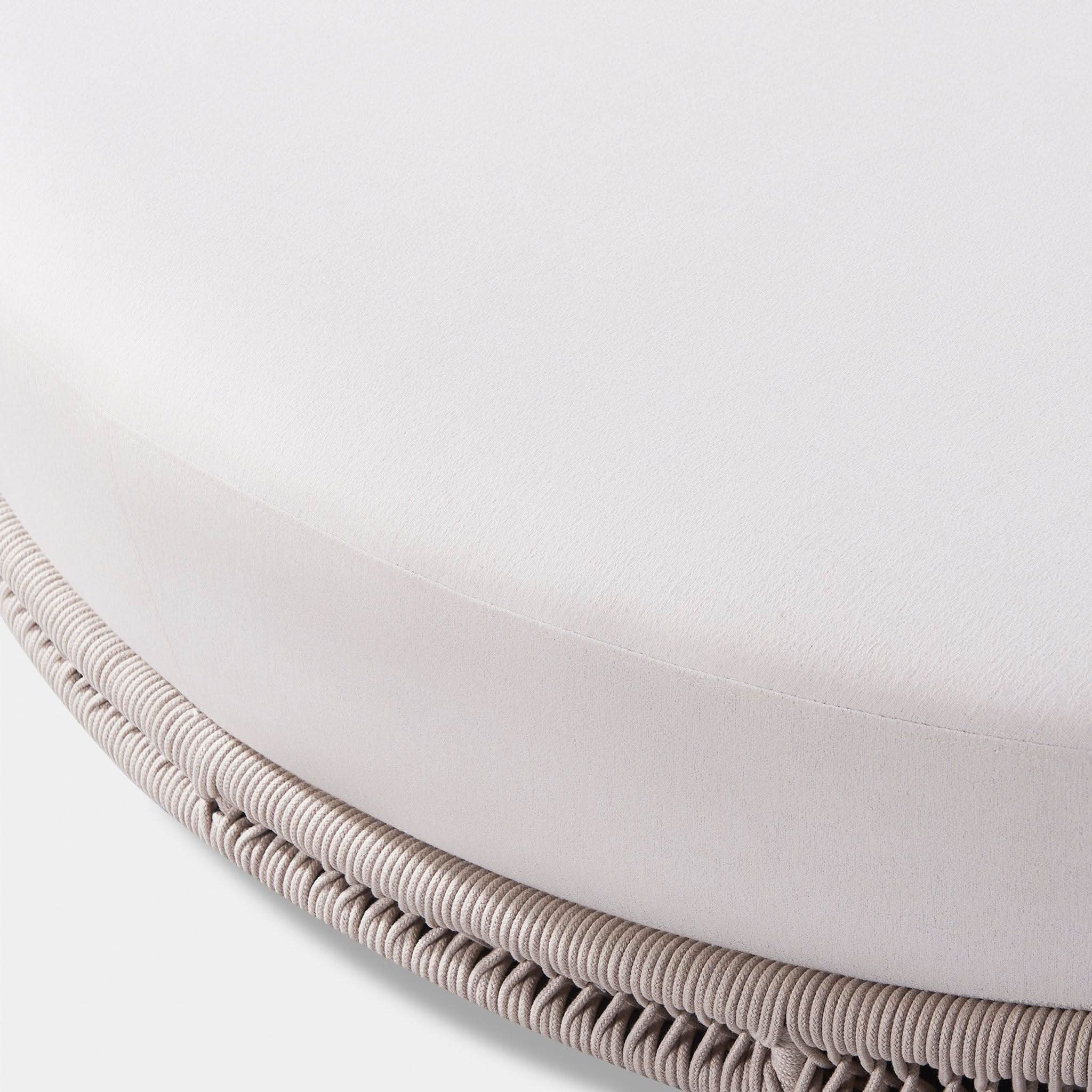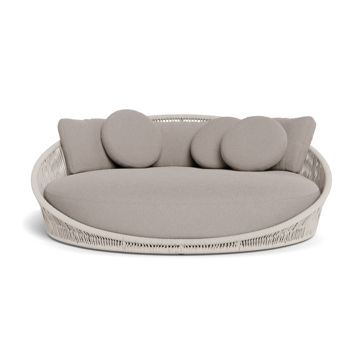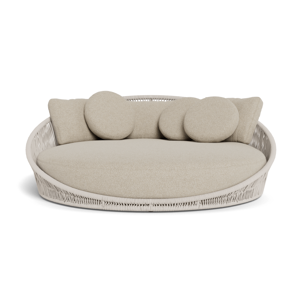 Designed by Marcel Wanders Studio. Featuring a signature radial rope pattern that creates a sophisticated rhythm, our Maui collection is nomadic luxury. Interpreting the elements of the Maui style in a poolside daybed, the Maui Daybed is a fun, bold focal point for your space — enjoy a plush lounge cushion with room for several, hand wrapped with rope in a naturally tapering shape. A casual mix of round and rectangular back pillows completes the aesthetic. Refined and yet Bohemian, this conversation piece amplifies any space.