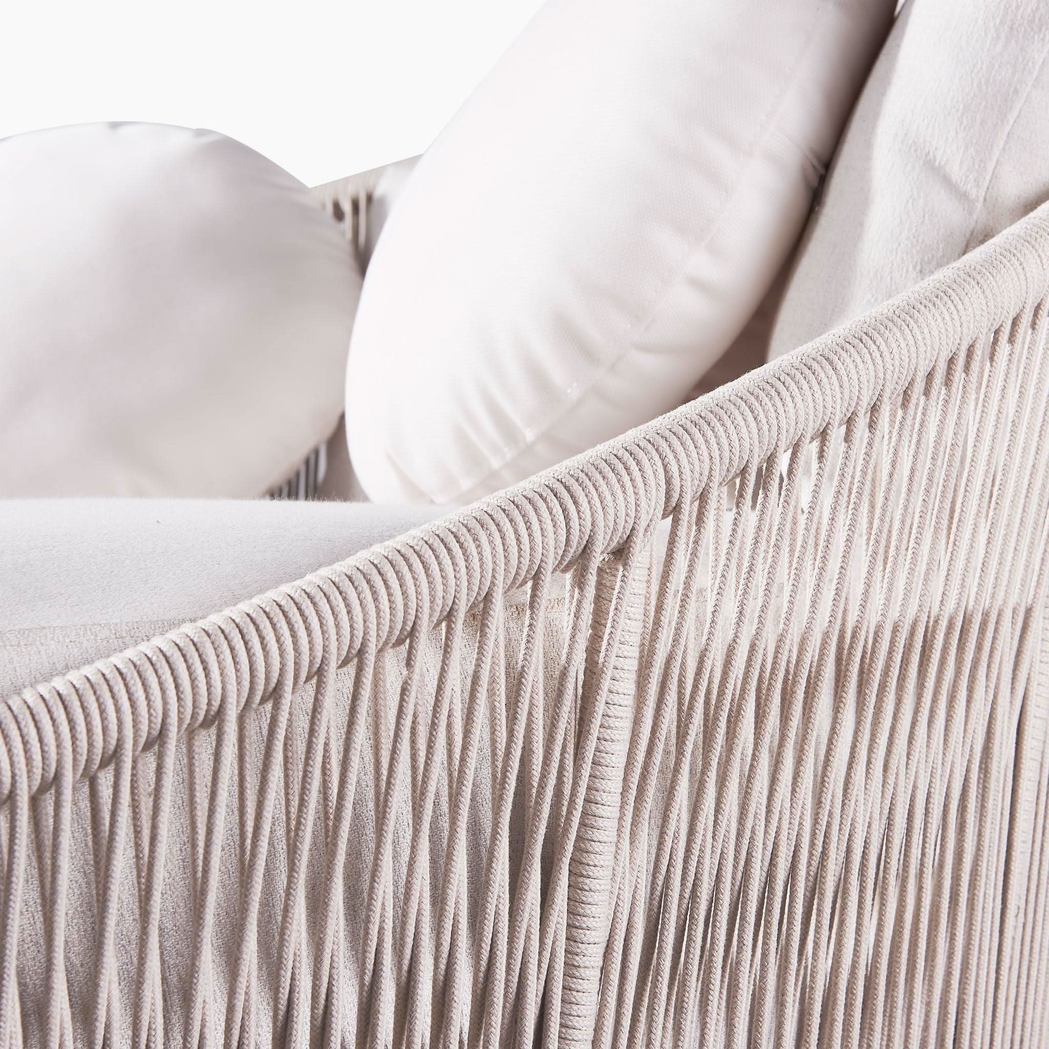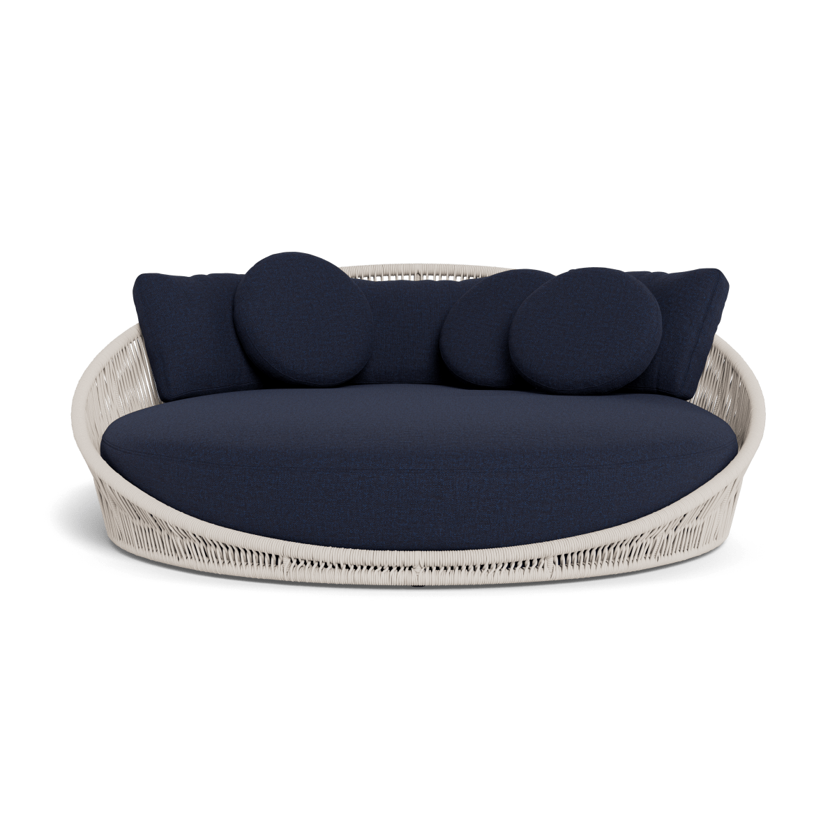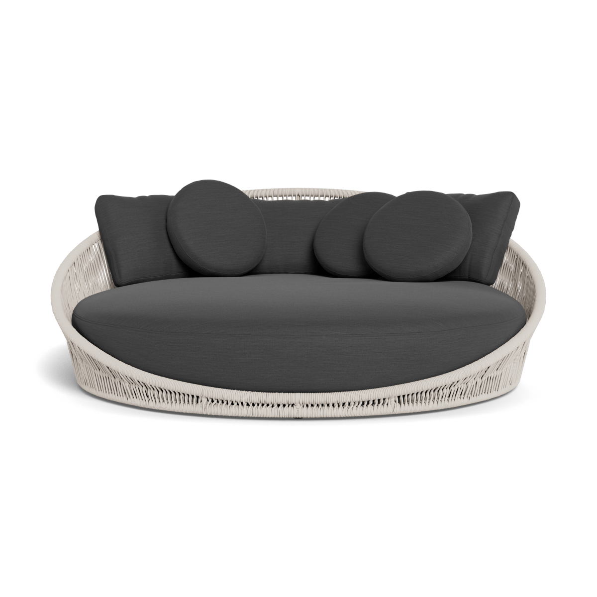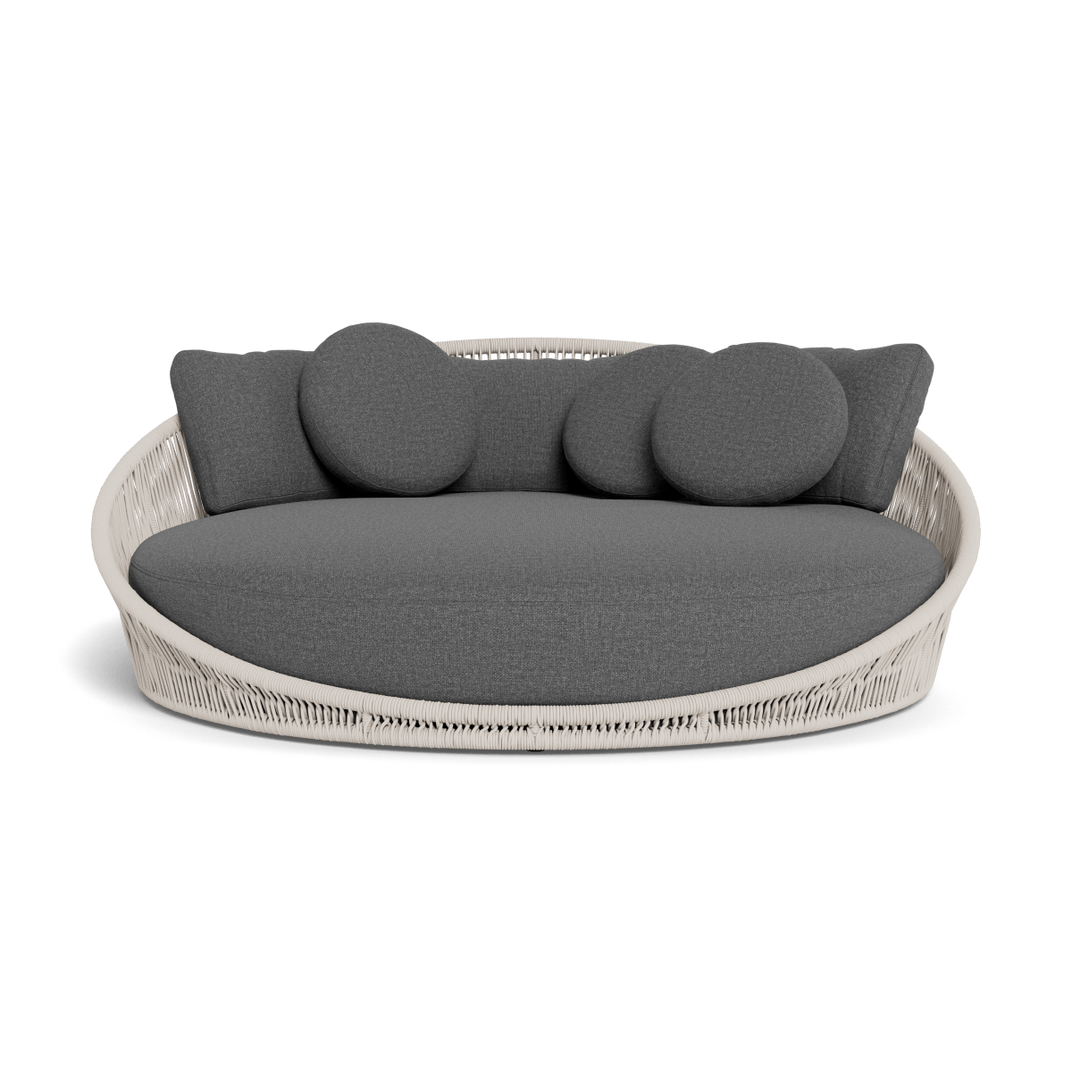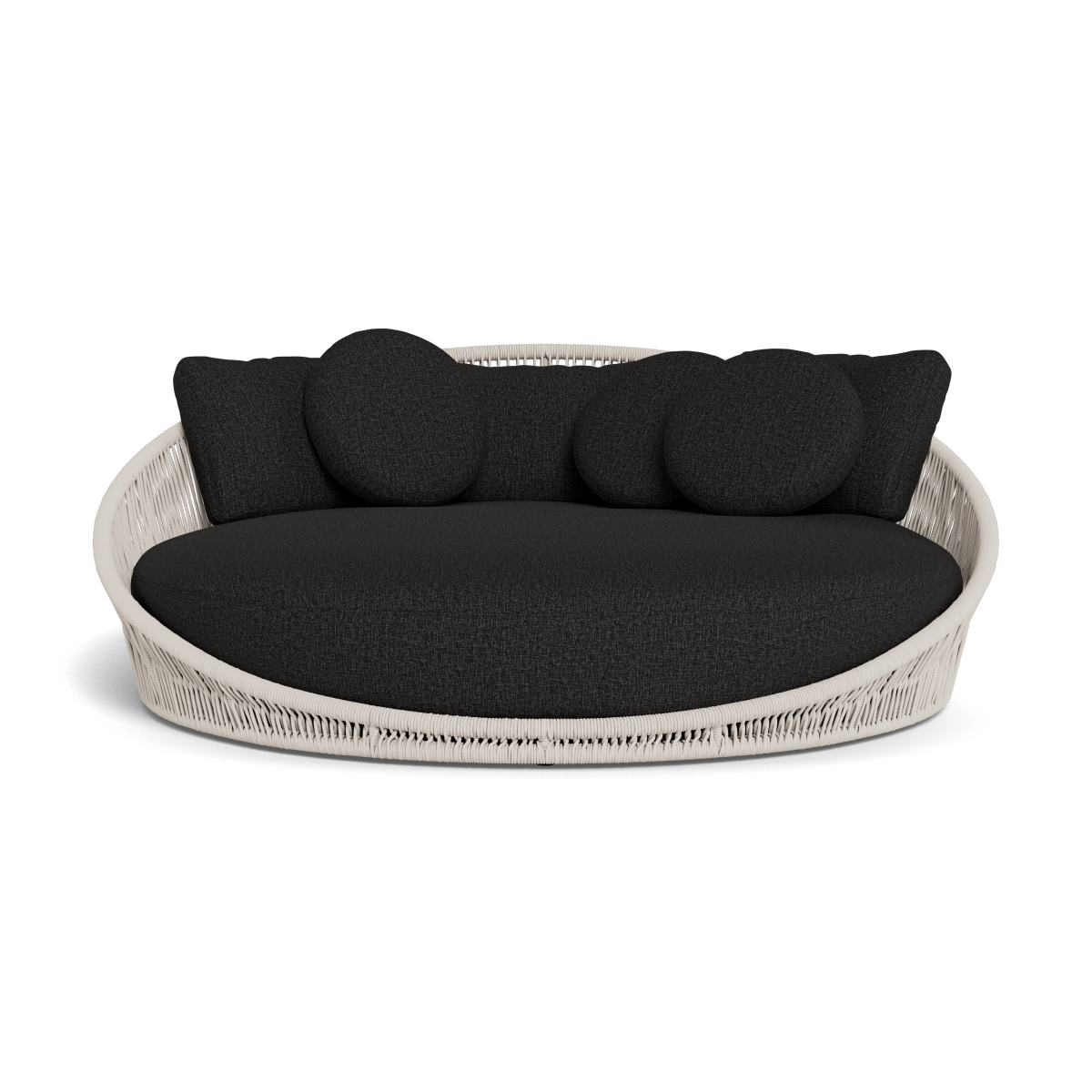 Designed by Marcel Wanders Studio. Featuring a signature radial rope pattern that creates a sophisticated rhythm, our Maui collection is nomadic luxury. Interpreting the elements of the Maui style in a poolside daybed, the Maui Daybed is a fun, bold focal point for your space — enjoy a plush lounge cushion with room for several, hand wrapped with rope in a naturally tapering shape. A casual mix of round and rectangular back pillows completes the aesthetic. Refined and yet Bohemian, this conversation piece amplifies any space.