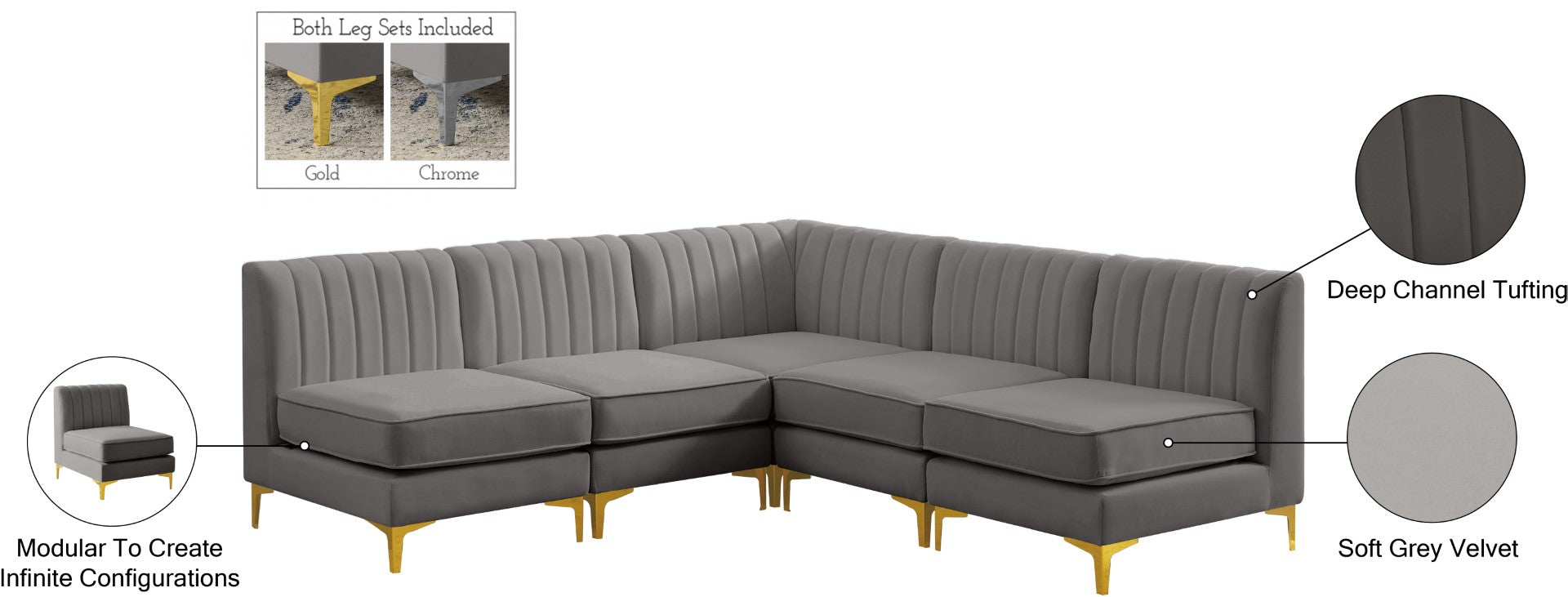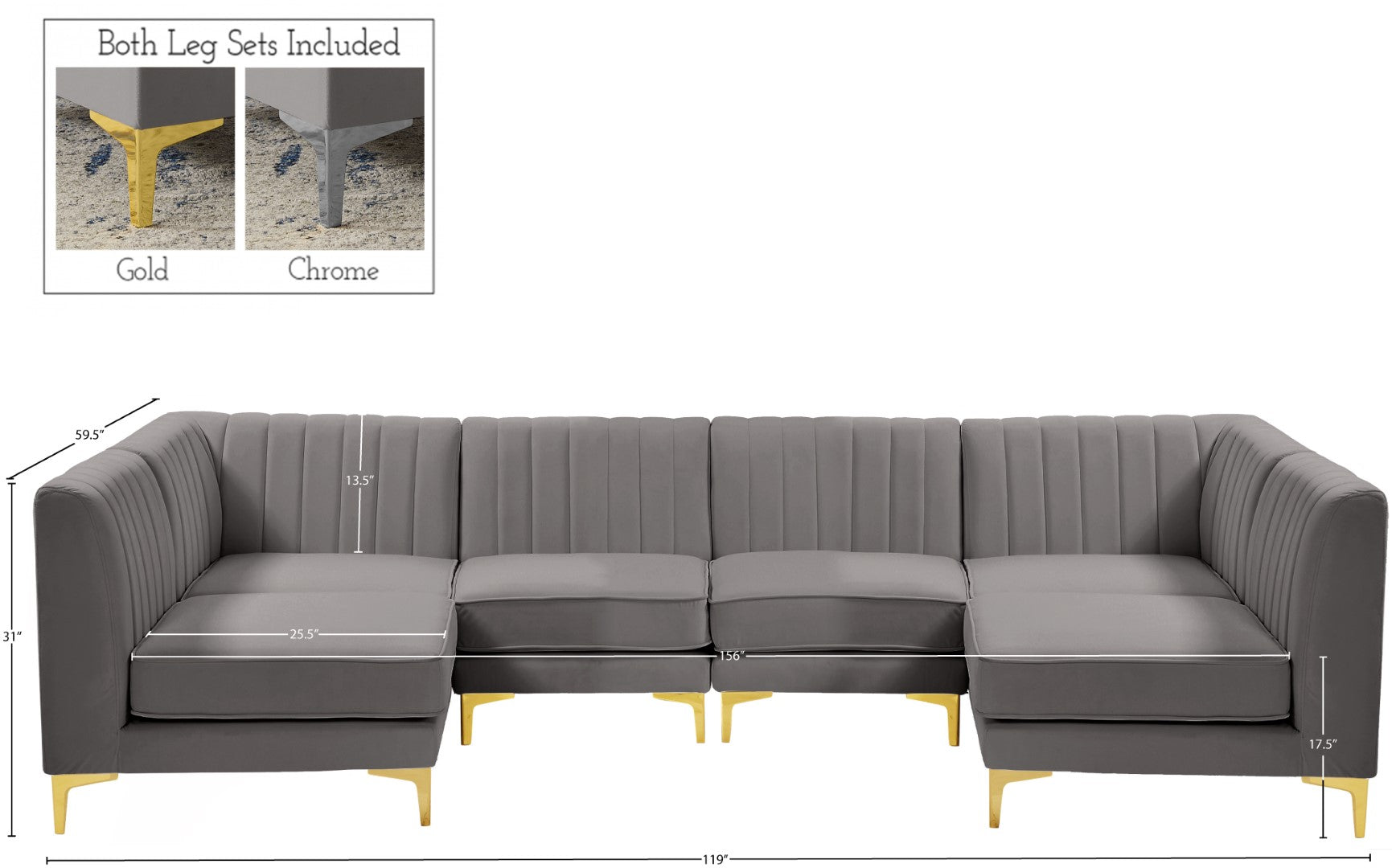 Bring modern beauty to your space with the addition of this Alina Velvet Modular sectional. This beautiful sectional features deep channel tufting...