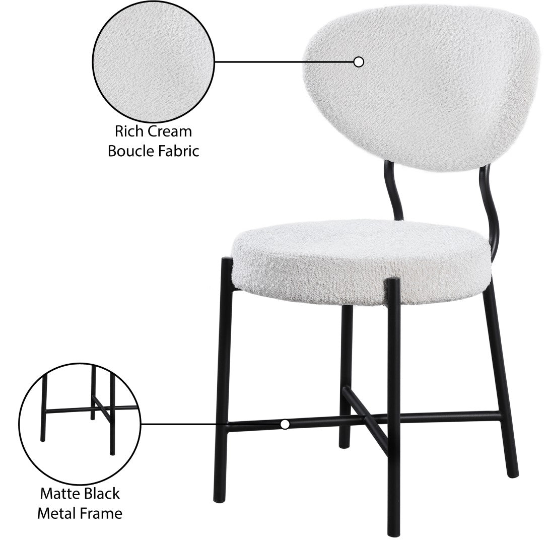 Eat your meals in style with this Allure dining chair. Featuring a matte black metal frame and cream boucle fabric upholstery, this...