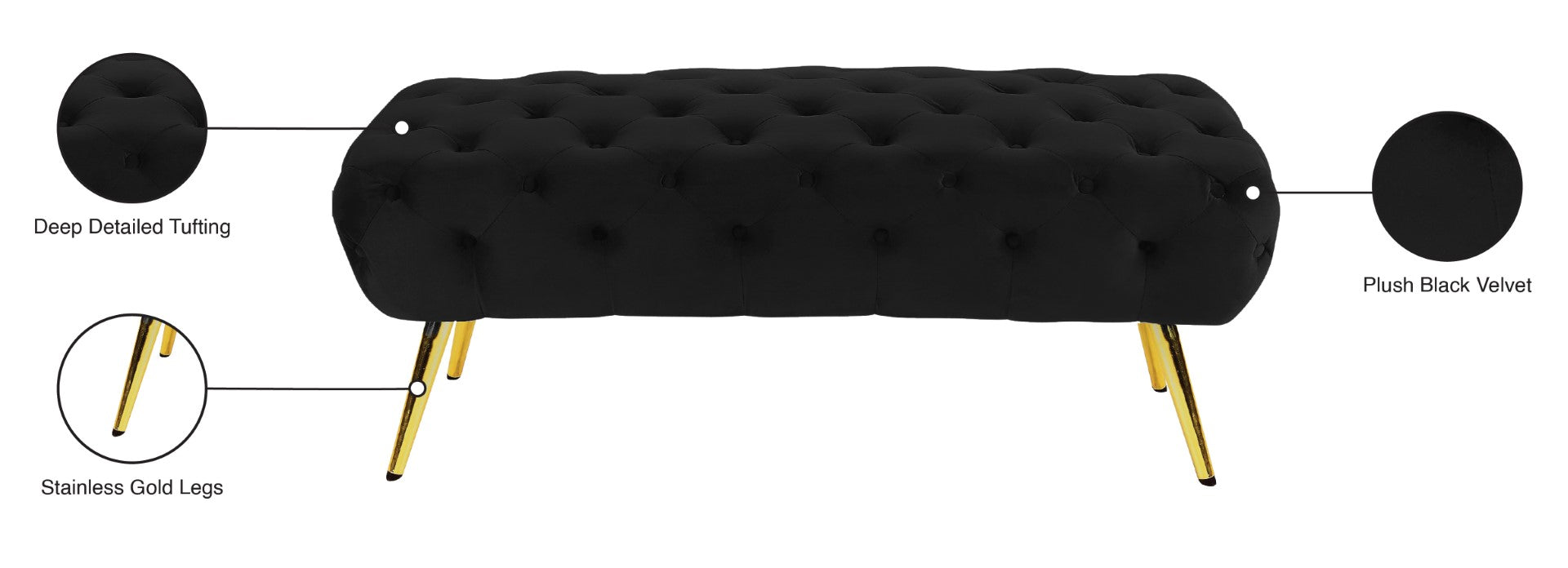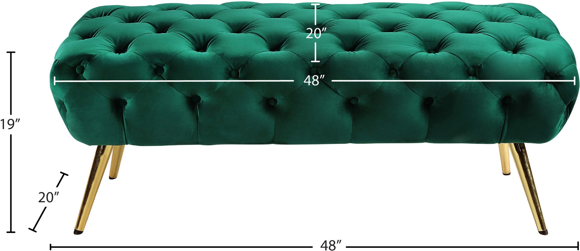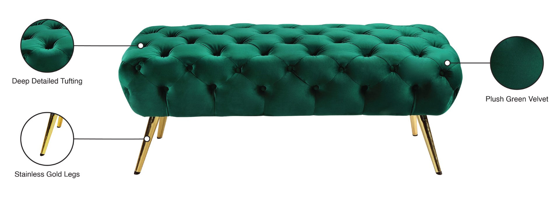 Amara Luxury Velvet Bench with Gold Stainless Steel Legs for Contemporary Home Elegance and Comfort