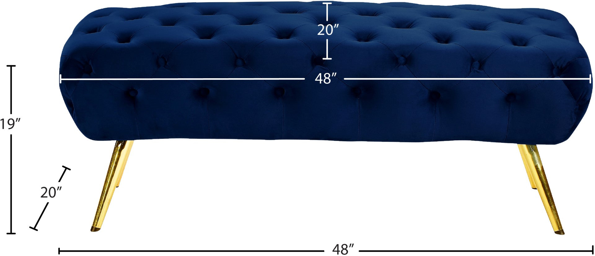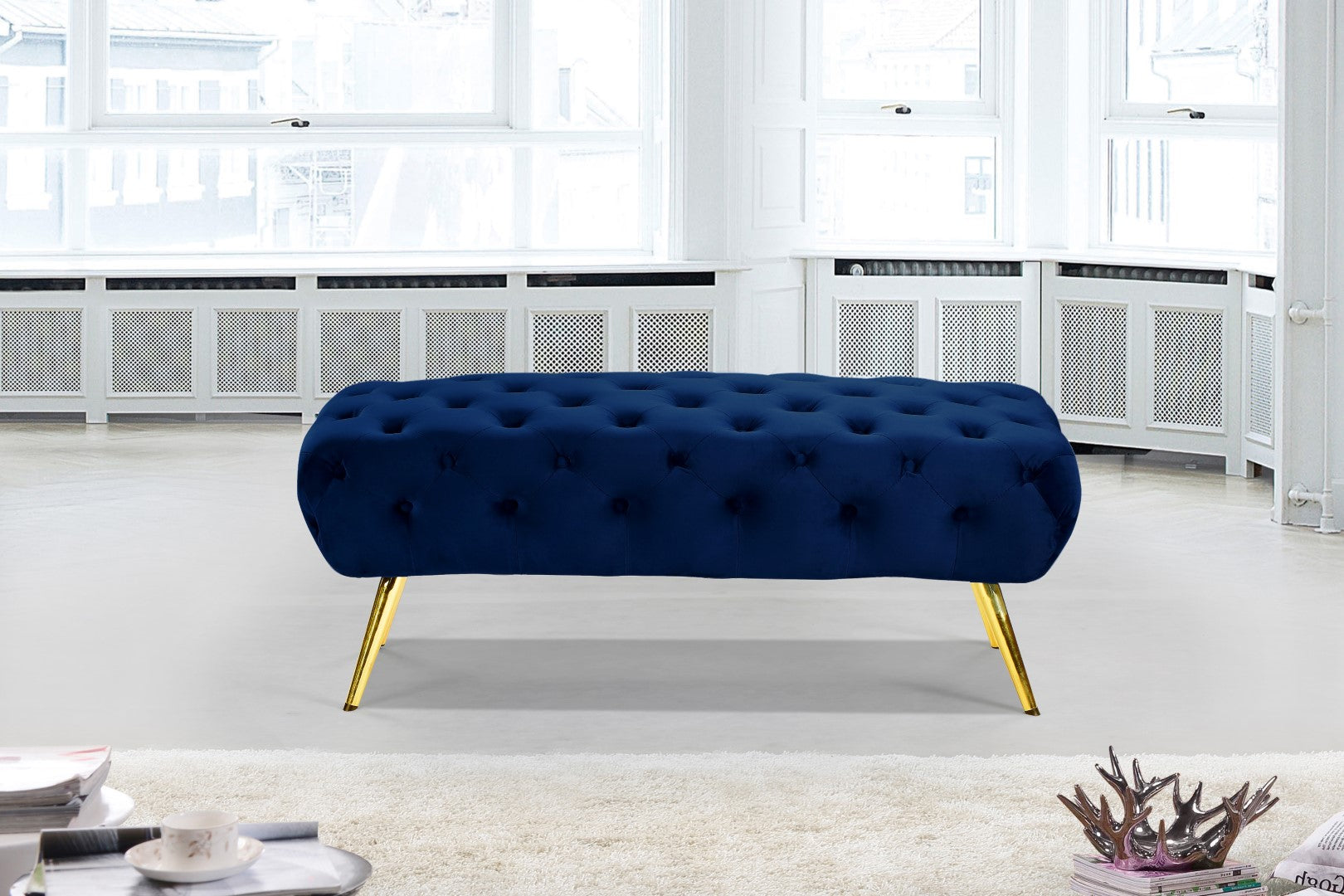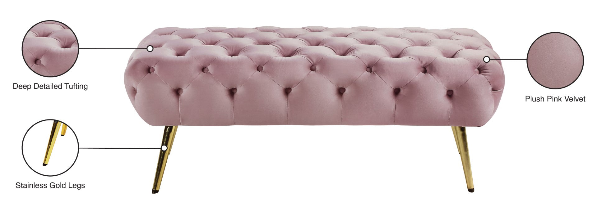 Amara Luxury Velvet Bench with Gold Stainless Steel Legs for Contemporary Home Elegance and Comfort