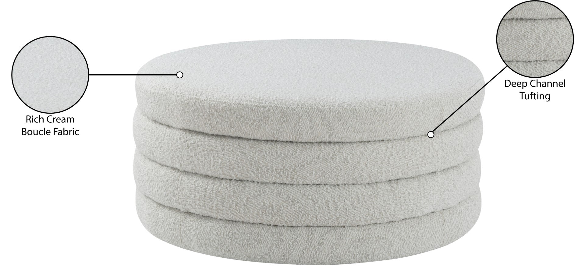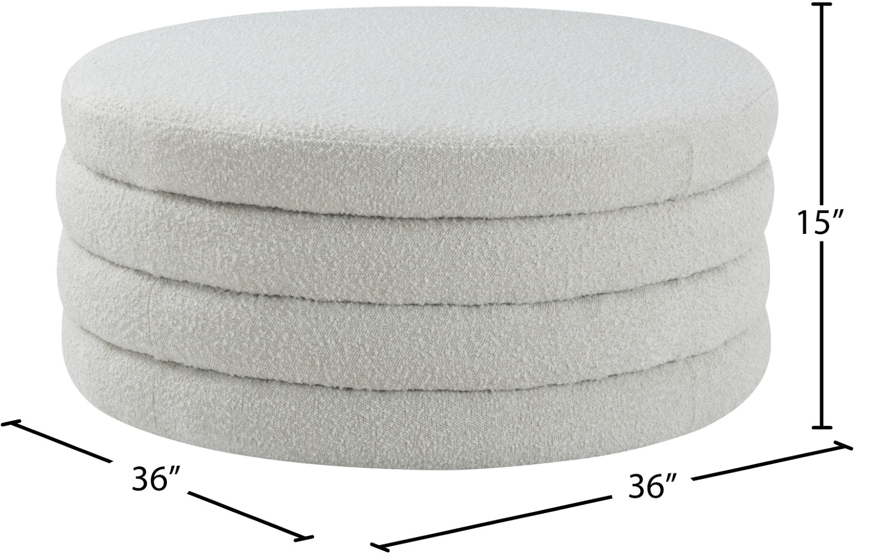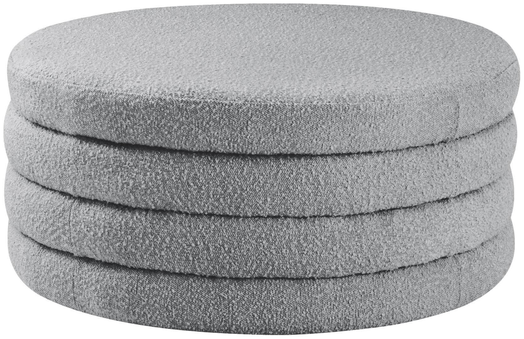 Liven up your living space with this Aphia grey boucle fabric ottoman/coffee table from Meridian Furniture. Featuring rich grey boucle fabric upholstery, this ottoman offers softness to the touch and style to the eye. Deep channel tufting gives the appearance of multiple layers stacked together, making it a contemporary piece perfect for any modern home. Pair this ottoman with a matching grey sofa, or use it as a stool to provide extra seating when you have visitors.