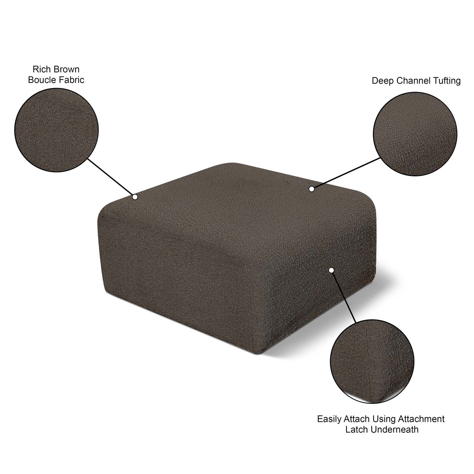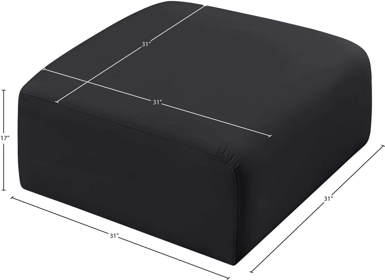 Unleash modern opulence with the Arc Vegan Leather Ottoman. Crafted for the modern connoisseur, this ottoman injects an air of refined luxury into any space. Its sleek silhouette, upholstered in supple black vegan leather, exudes timeless sophistication while the deep channel tufting adds textural intrigue, further elevating the chair's visual appeal. The modular design makes it a versatile chameleon, effortlessly adapting to your evolving needs and preferences. Whether you envision it gracing a chic living room corner, basking in the glow of a bedroom window, or adding a touch of drama to a home office, the Arc seamlessly complements your unique interior aesthetic.