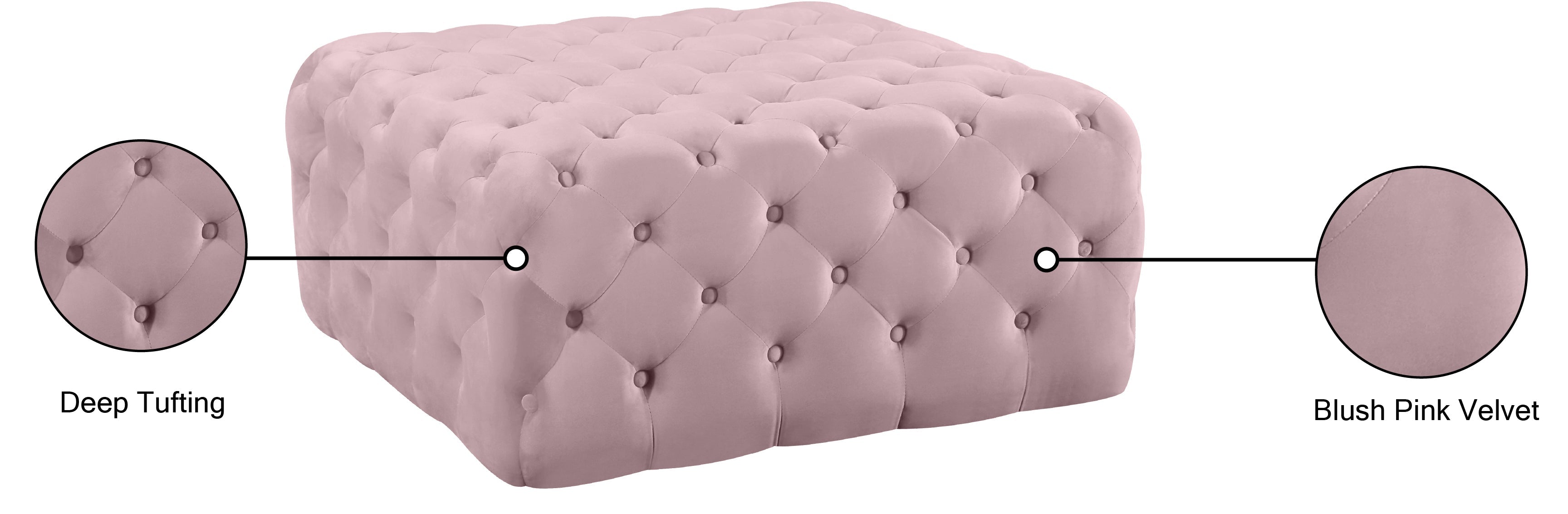 Make this Ariel pink velvet ottoman/bench part of your relaxation ritual. This welcoming ottoman has a lavish look with its deep button-tufting and lush velvet upholstery. The soft pink color lends a cheery feel to your room and has a shiny sheen that gives it a sumptuous and welcoming look. This glamorous-looking ottoman is an ideal foot prop at the end of the day and also doubles as an additional seat on family game night.
