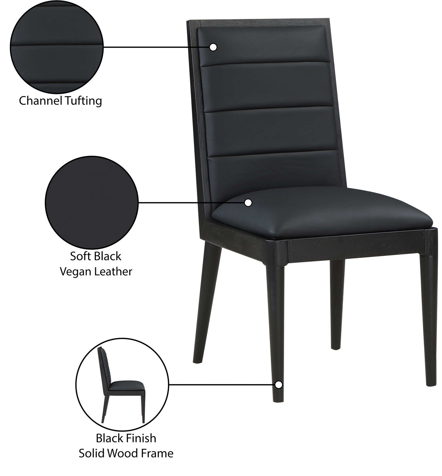 Bristol Dining Chairs - Set of 2 Modern Vegan Leather Upholstered with Stylish Channel Tufting