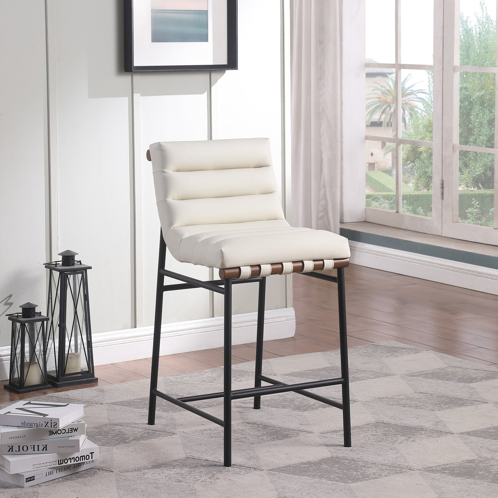 Dimensions: 813Cream-C Burke Cream Vegan Leather Counter Stool - 18" W x 24" D x 37.5" H Color: 813Cream-C Burke Cream Vegan...
