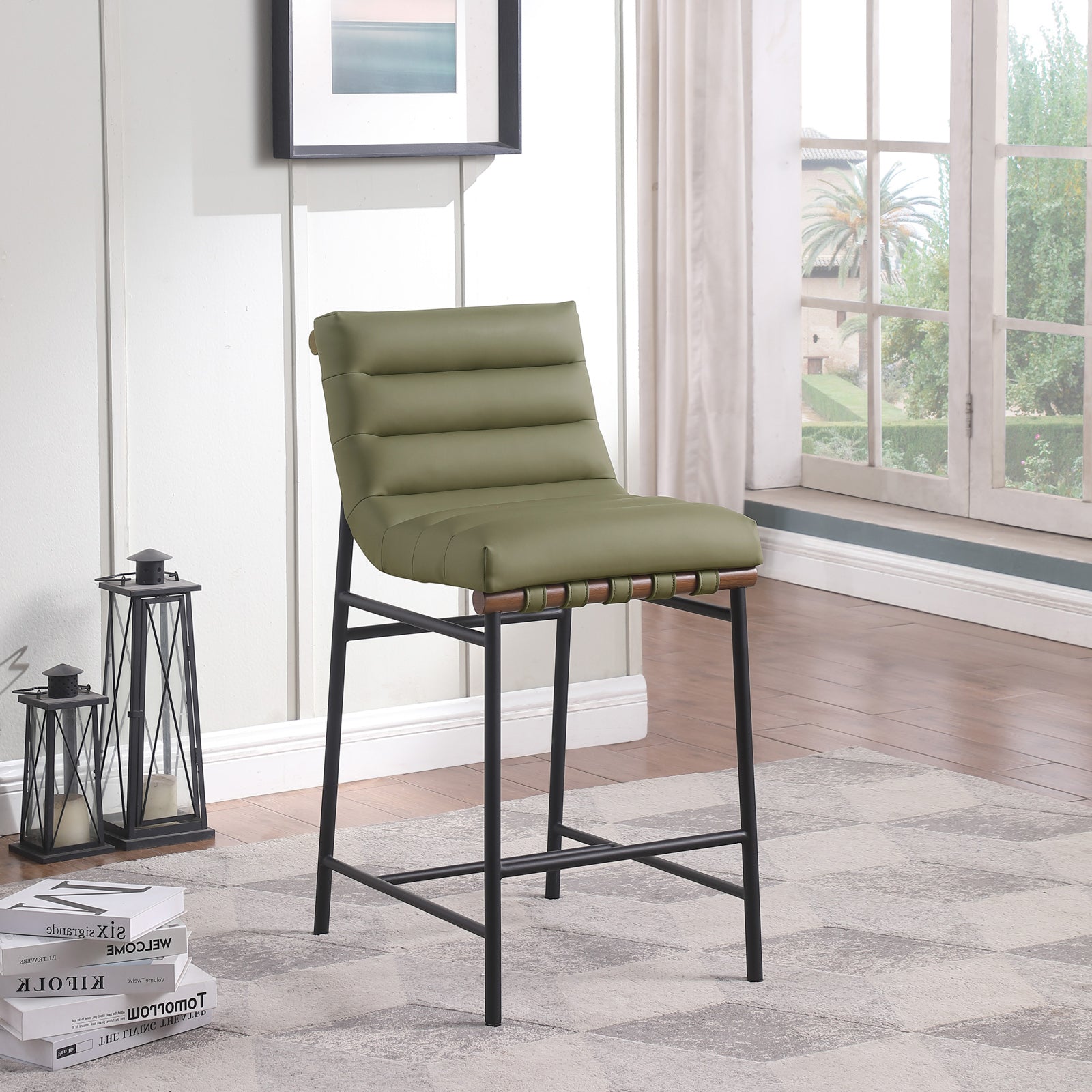Burke Contemporary Counter Stool - Stylish Vegan Leather, Walnut Wood & Matte Black Frame Design