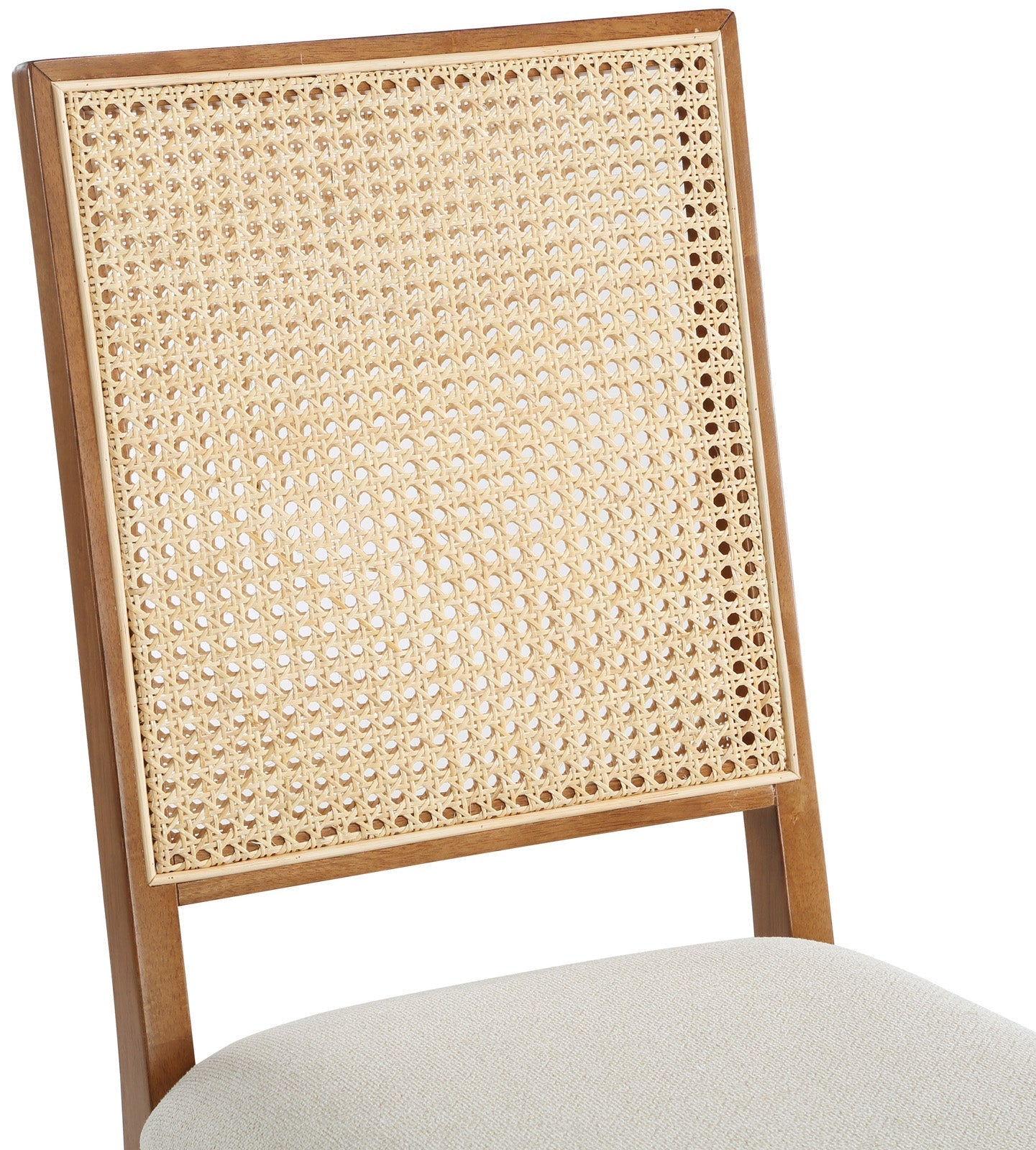 Butterfly Cream Linen Dining Chairs - Set of 2 with Mid-Century Style & Natural Cane Backrest