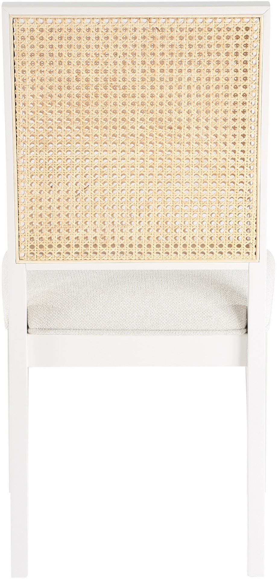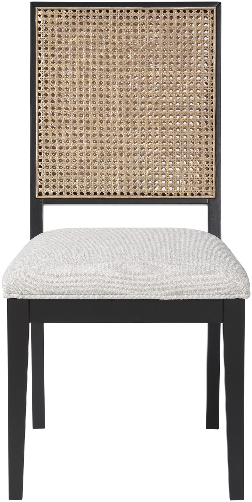 Give your dining space a traditional makeover with this Butterfly dining chair from Meridian Furniture. Its solid rubber wood frame features a sleek black finish, and its cushion is upholstered in soft cream linen-like polyester fabric, providing comfort and complementary colors to your dining table. Its natural cane back is reminiscent of a mid-century design, so you can relax in style as you dine, and making this piece right at home in any living space.