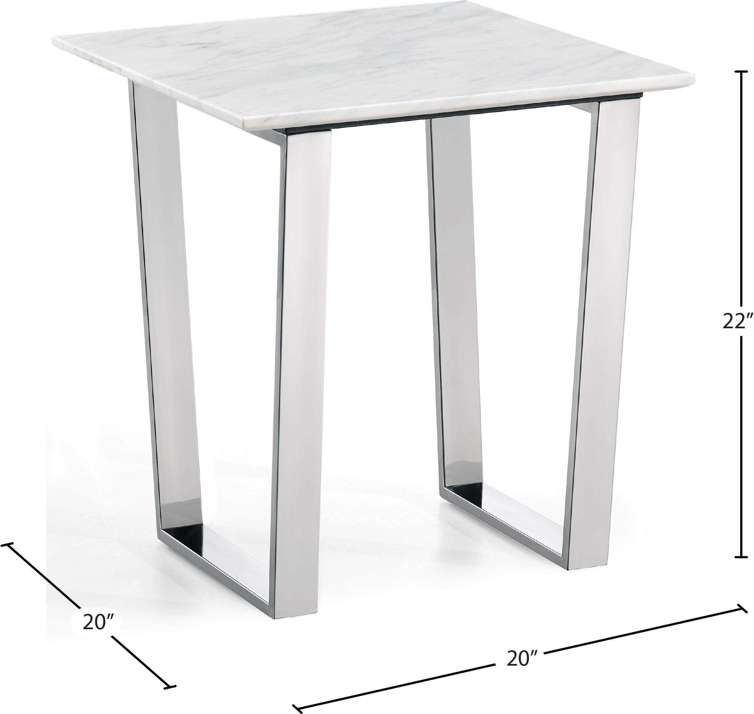 Carlton Chrome End Table with Solid Stone Top - Modern Marble Veneer Design for Your Living Room