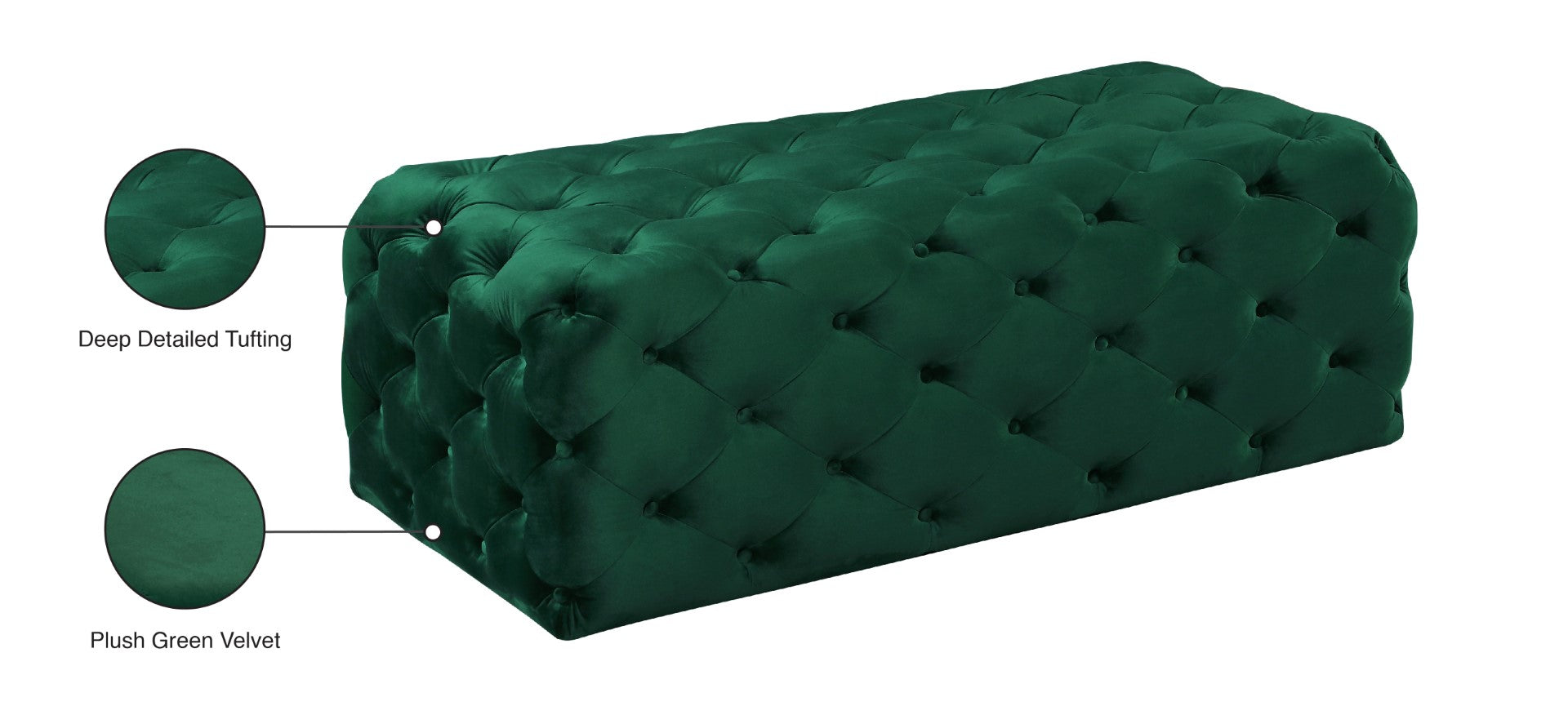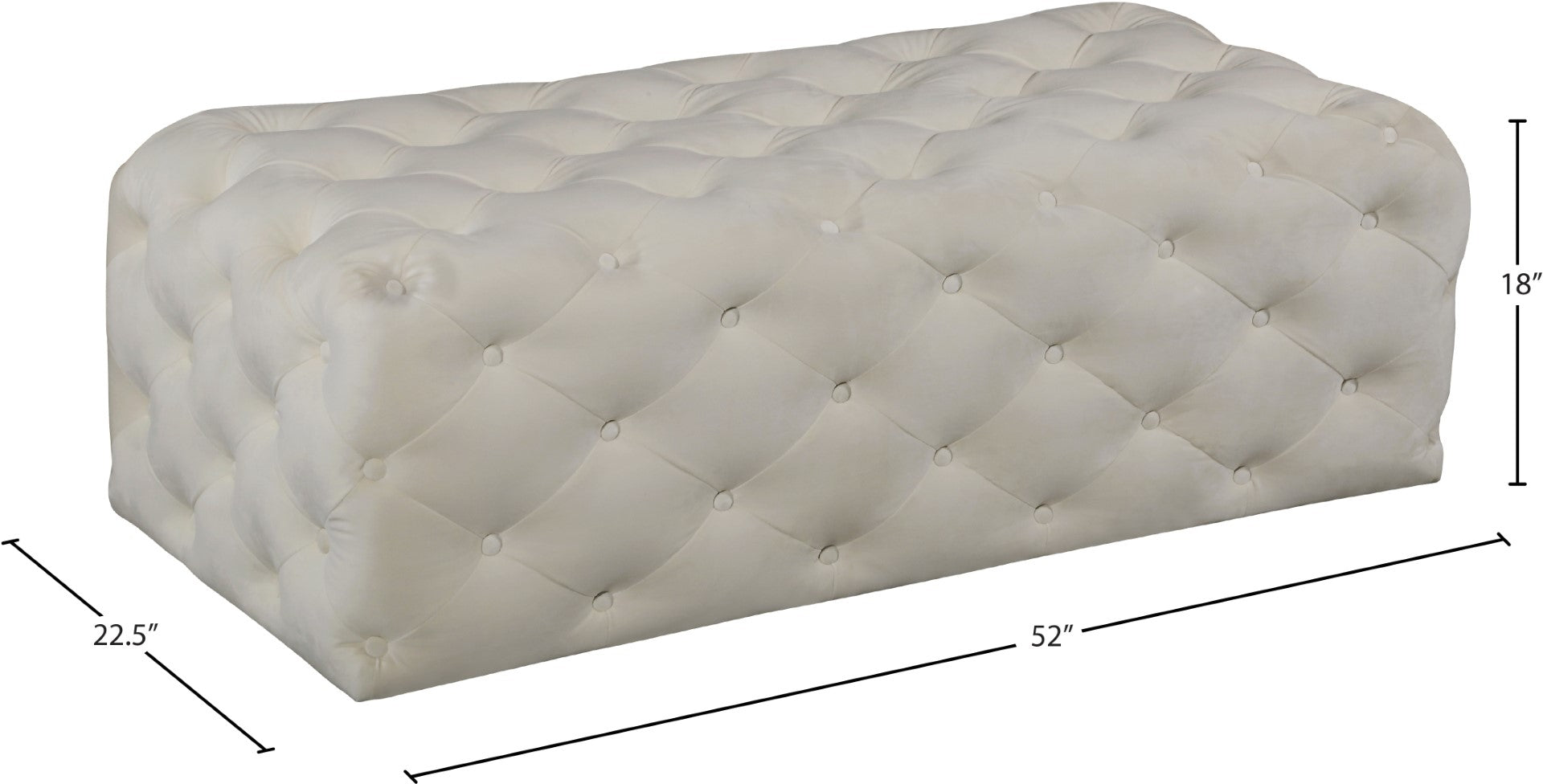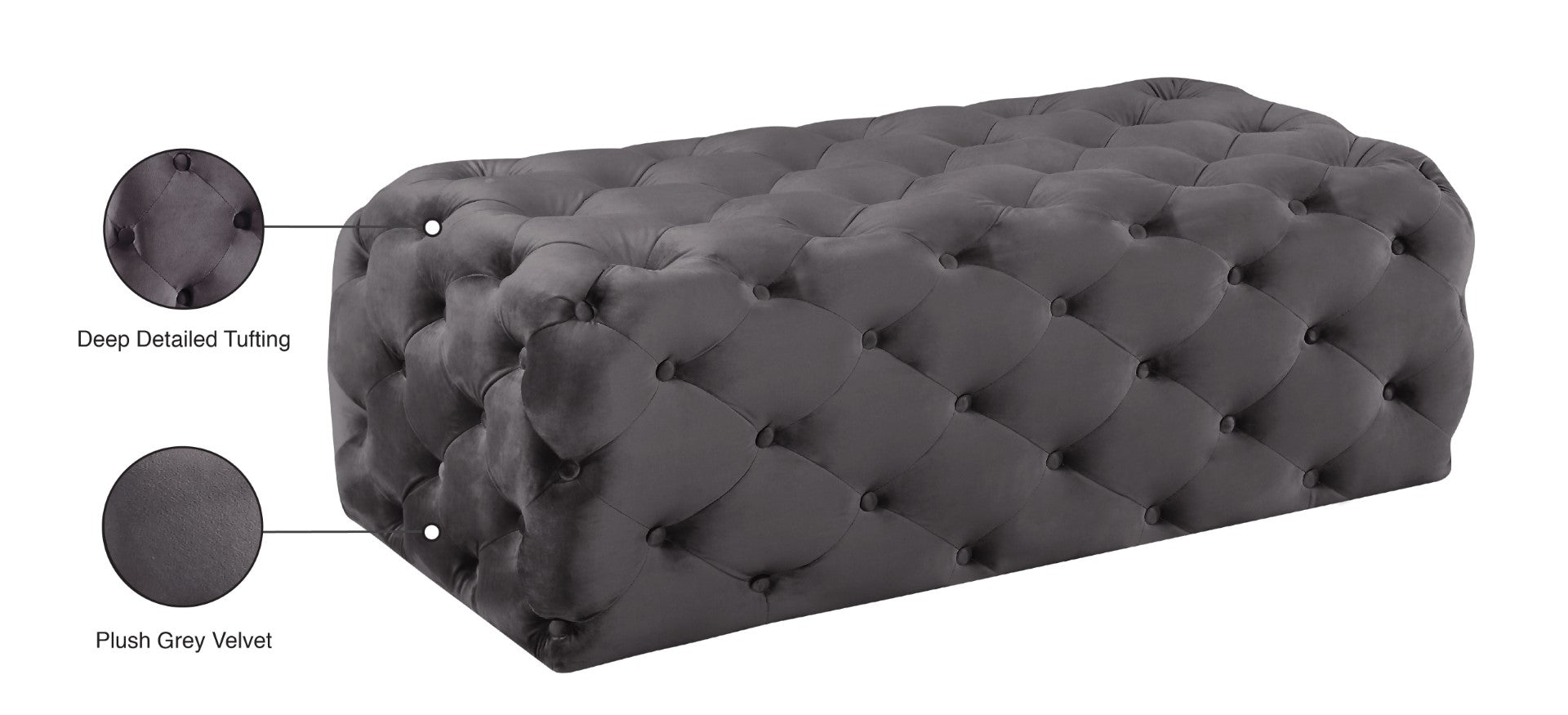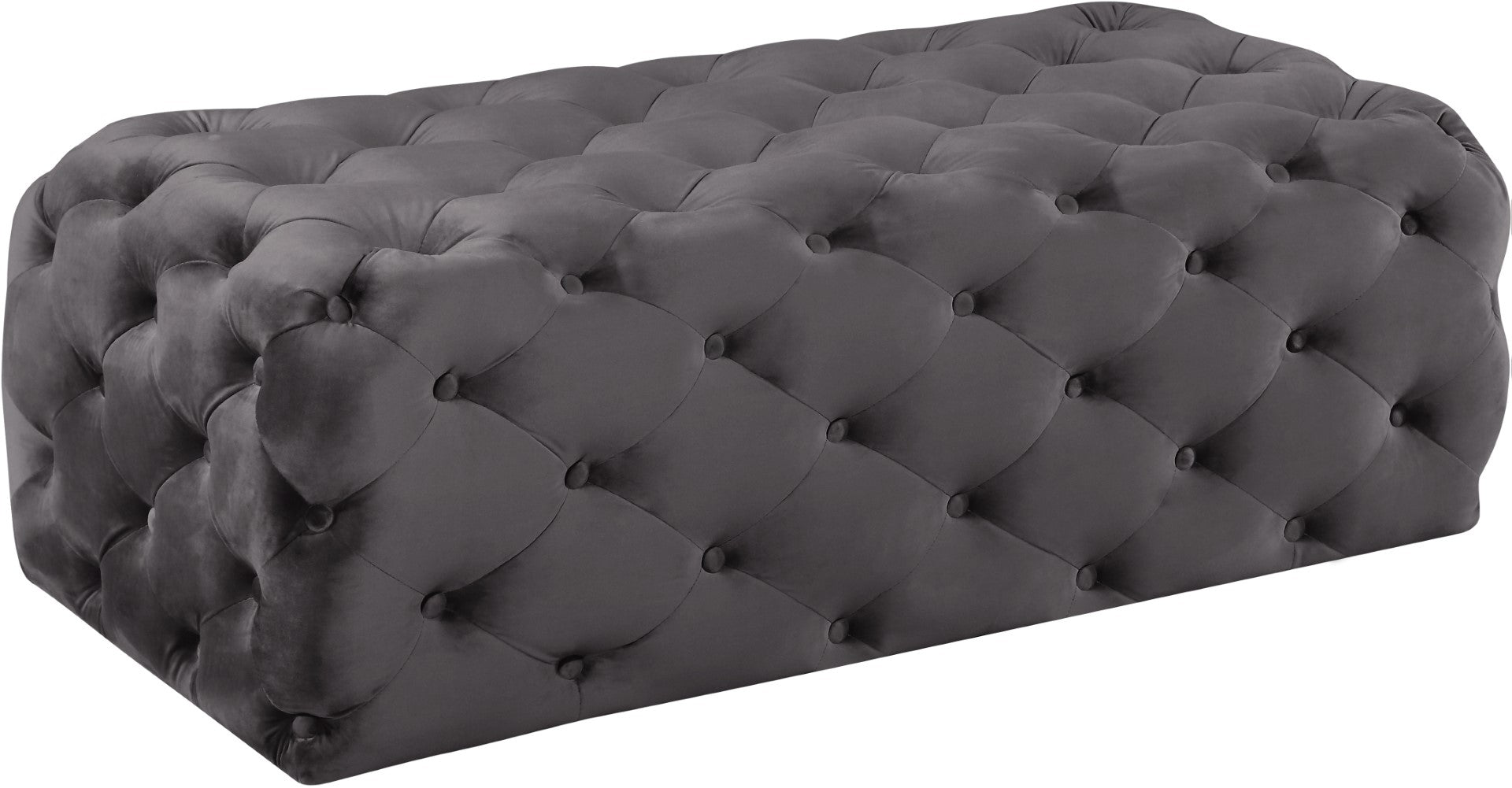 Prop your feet up and get comfy with the Casey navy velvet ottoman. This elegant ottoman features a glamorous design with heavy tufting from top to bottom, giving it a sophisticated, upscale look. The padding beneath its velvet upholstery is plump and thick, so your feet and lower legs sink into it in lavish comfort. Buy it on its own, or pair it with other items in the collection for a coordinated vibe in your space.