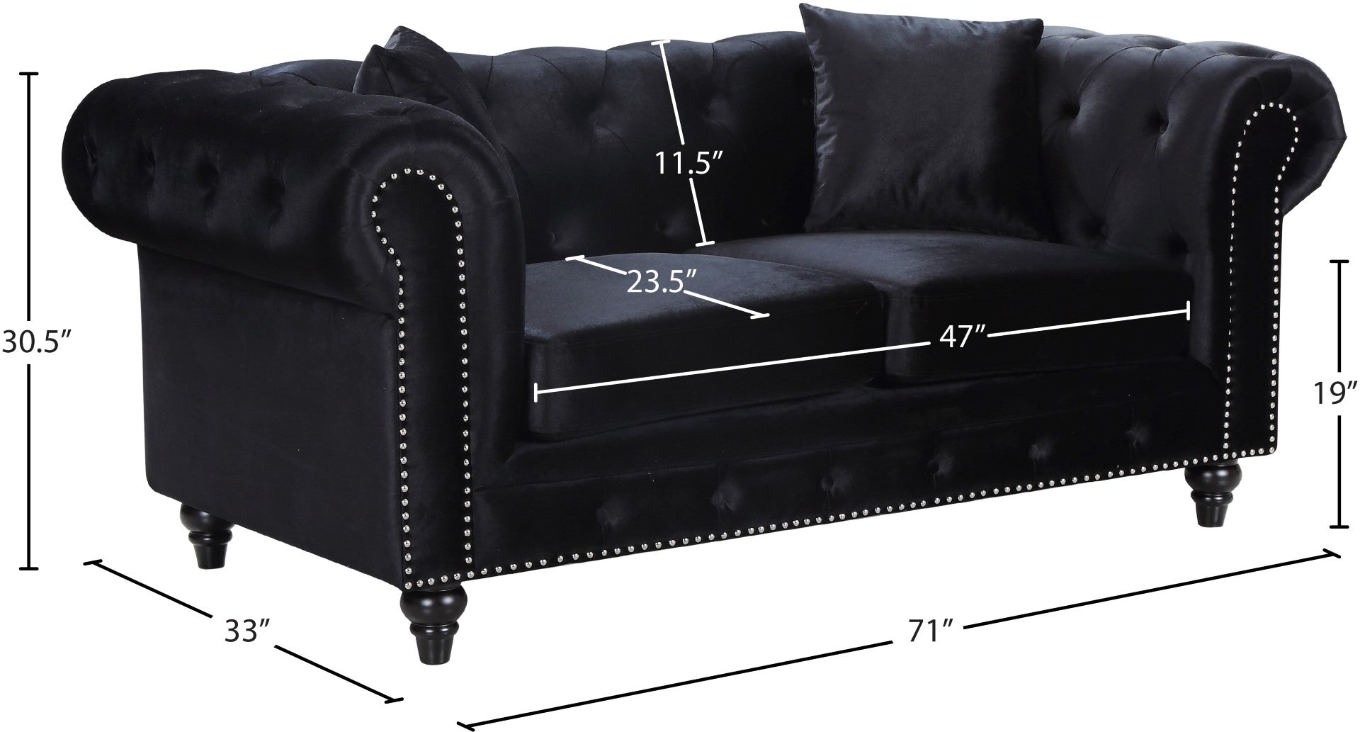 Chesterfield Velvet Loveseat – Elegant Contemporary Design with Nailheads & Matching Pillows
