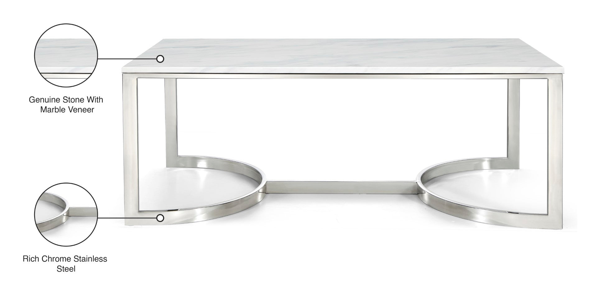 Copley Contemporary Coffee Table with Marble Veneer & Chrome Base - Modern Living Room Design