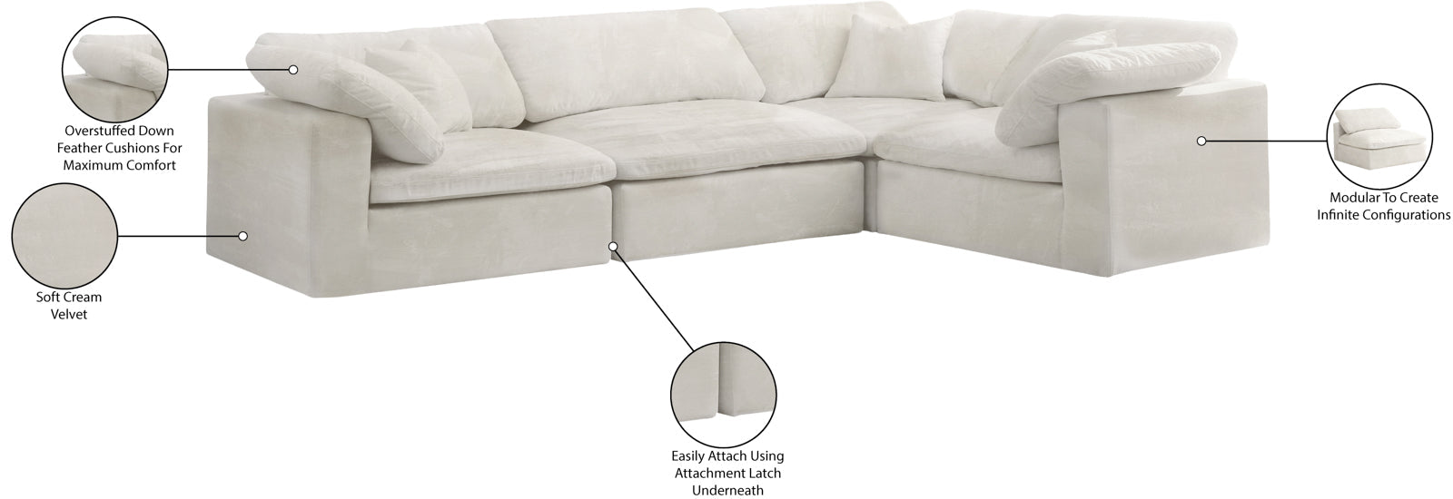 Bring home this Cozy 4-piece sectional for a fresh new look. Embrace casual elegance with this Cozy velvet cloud-like comfort modular fiber-filled...