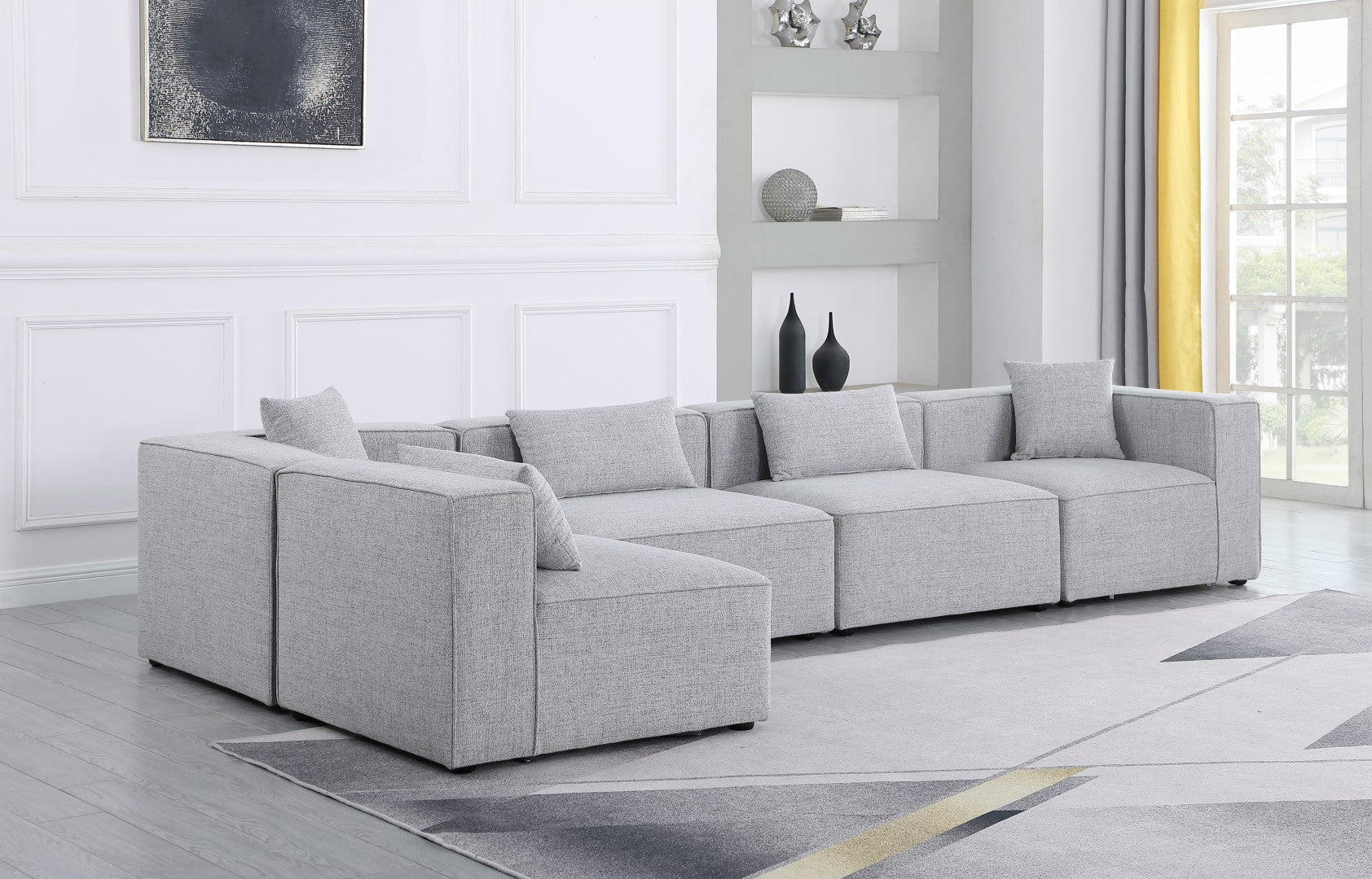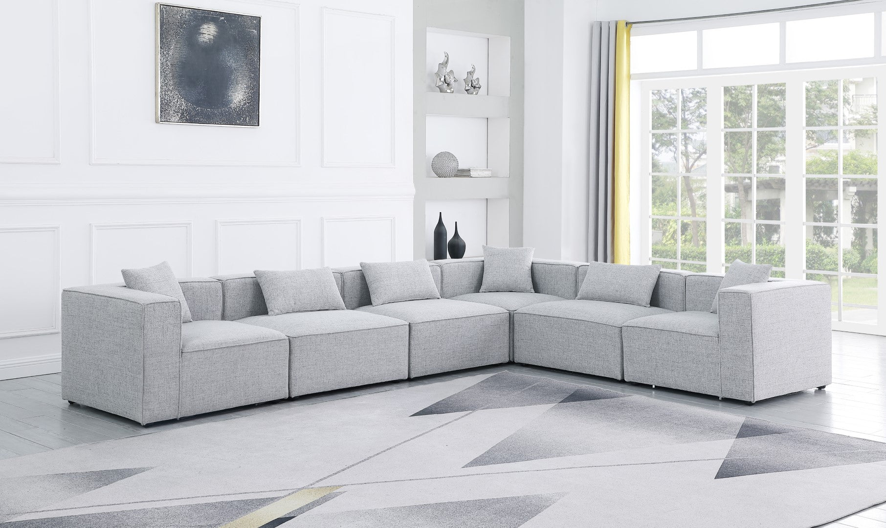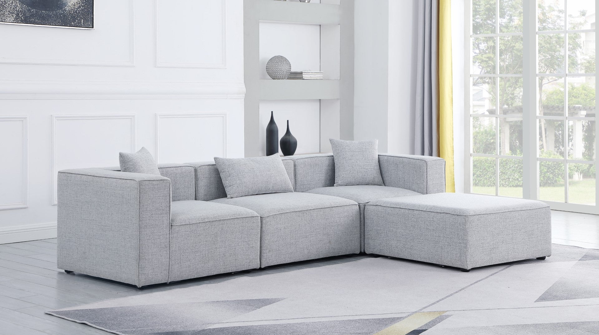 Cube Modular Sectional Sofa - Elegant Cream Linen Fabric with Customizable Configurations & Style